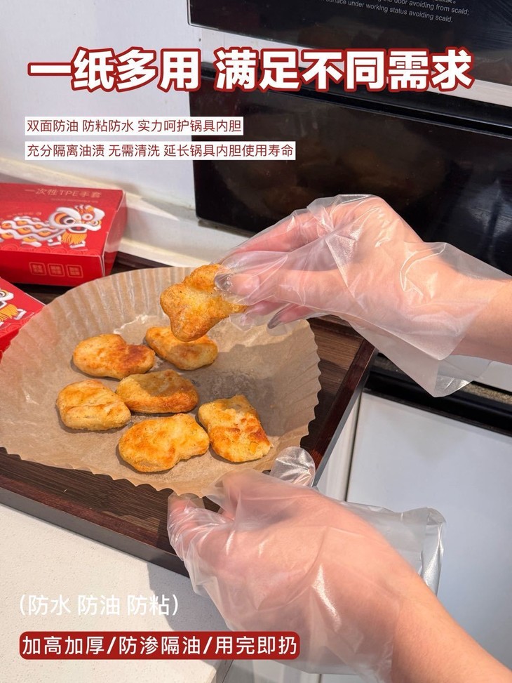 食品级硅油纸材质,安全又好用~ 把它放进空气炸锅,烤鸡翅、做蛋挞,油脂 稳稳接住,再也不用费力刷锅啦🍗 厨房偷懒必备!用了就知道多香,空气炸锅党无脑入✔ 让洗锅成为过去式,冲就完事儿~
