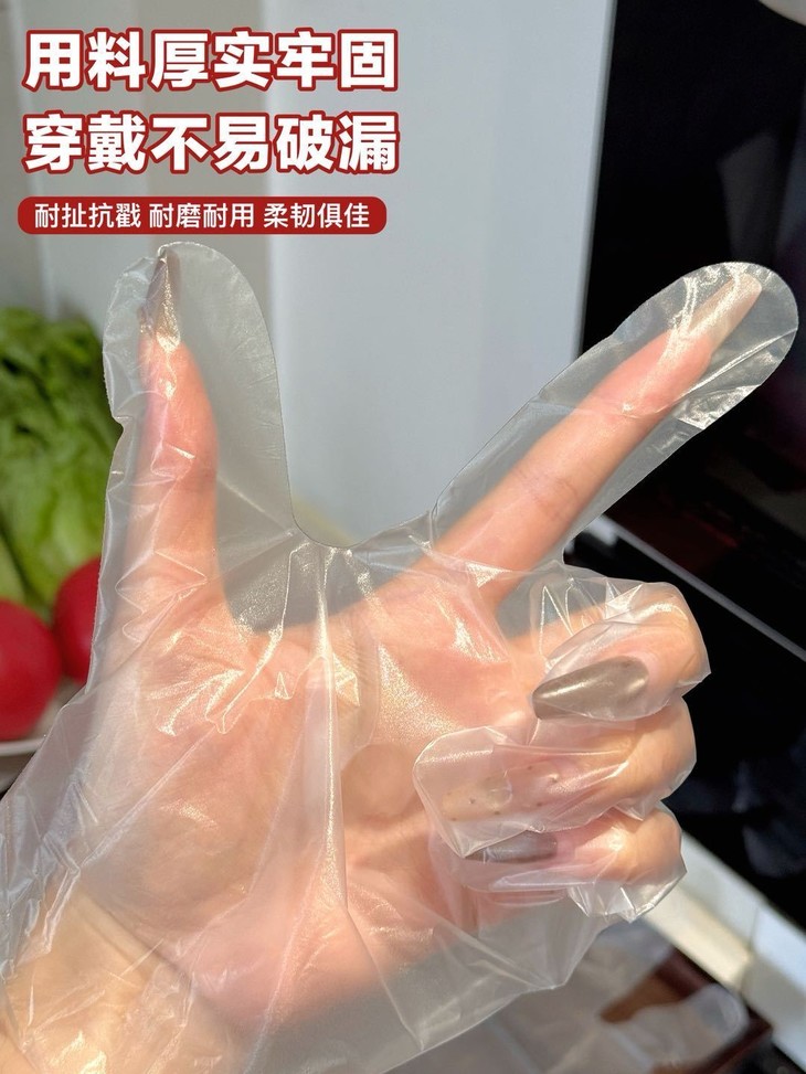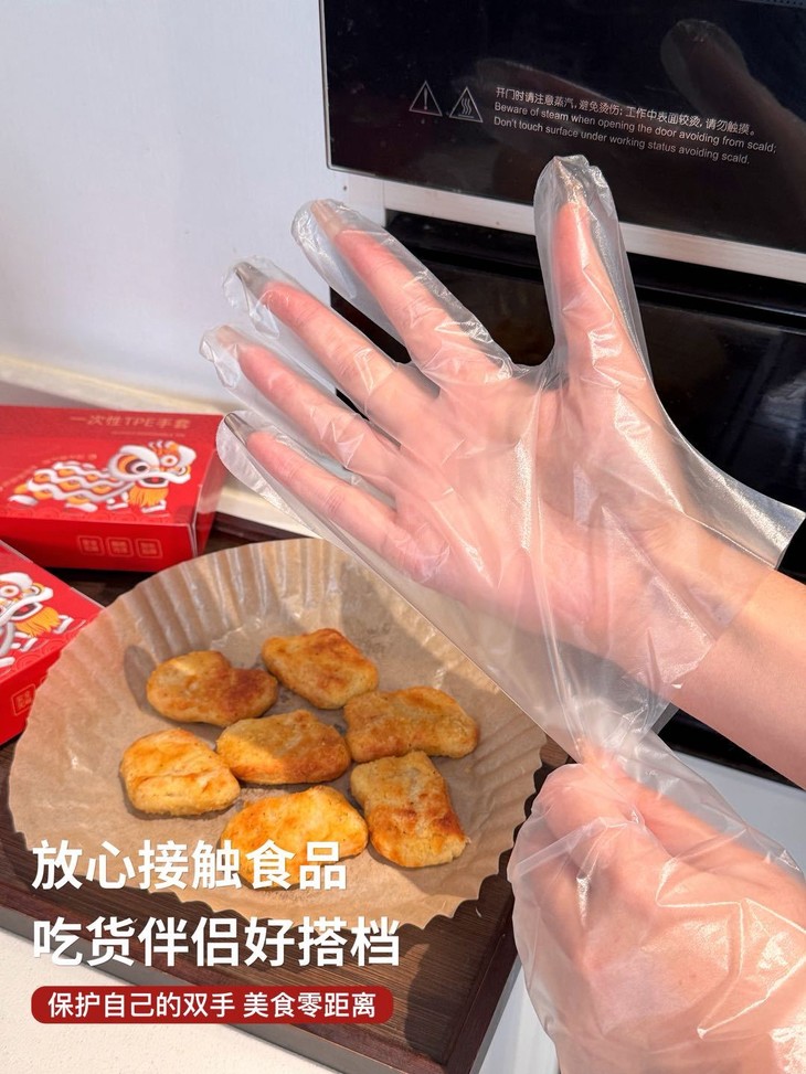 厨房里的“小透明”也能变身大功臣! 食品级TPE一次性手套 加厚设计超耐用,防水防油一双手套全搞定~ 不管是揉面、切菜还是处理海鲜 它都能稳稳接住你的“厨房挑战” 食品级材质用着超安心,直接接触食材也不怕! 而且弹性超好,戴久了也不会勒手 抽取设计超方便,用完随手一扔,干净又卫生~ 家里备上几盒,做饭、打扫、做手工都能用 简直是万能小助手!持久耐用,密封性好,无异味、弹性大、防油污。 佩戴方便舒适,手套一体成型,贴身手型不黏稠