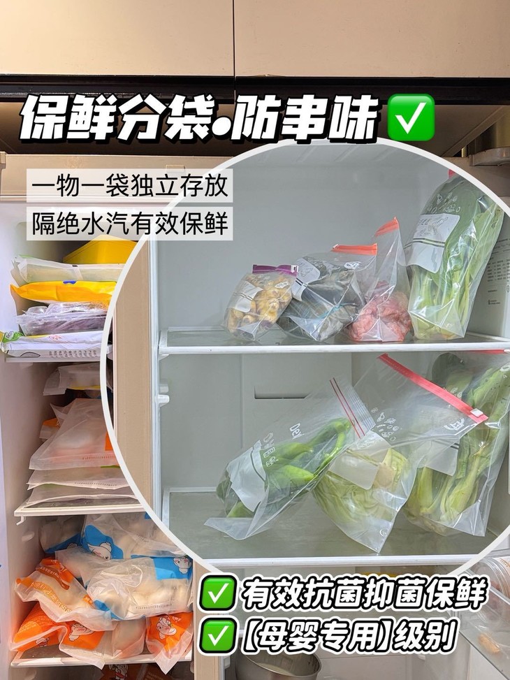 我自己家里一直在用去年囤的🤗 用的差不多了现在再团一次! 真的无敌好用👊🏻不好用我吃掉! ✅收纳方便!冰箱整齐划一干净卫生 ✅食品级PE材质✔️安全无毒✔️放心使用 ✅韧性牢固可靠可多次循环使用!
