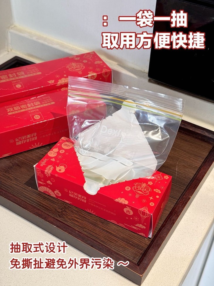 抽取式设计,一袋一用 专袋专用,不粘连、不串袋、不撕扯! 整个设计主打的干净卫生 无论是长期存储还是短期使用 这个创意设计都能为您提供可靠的防护。