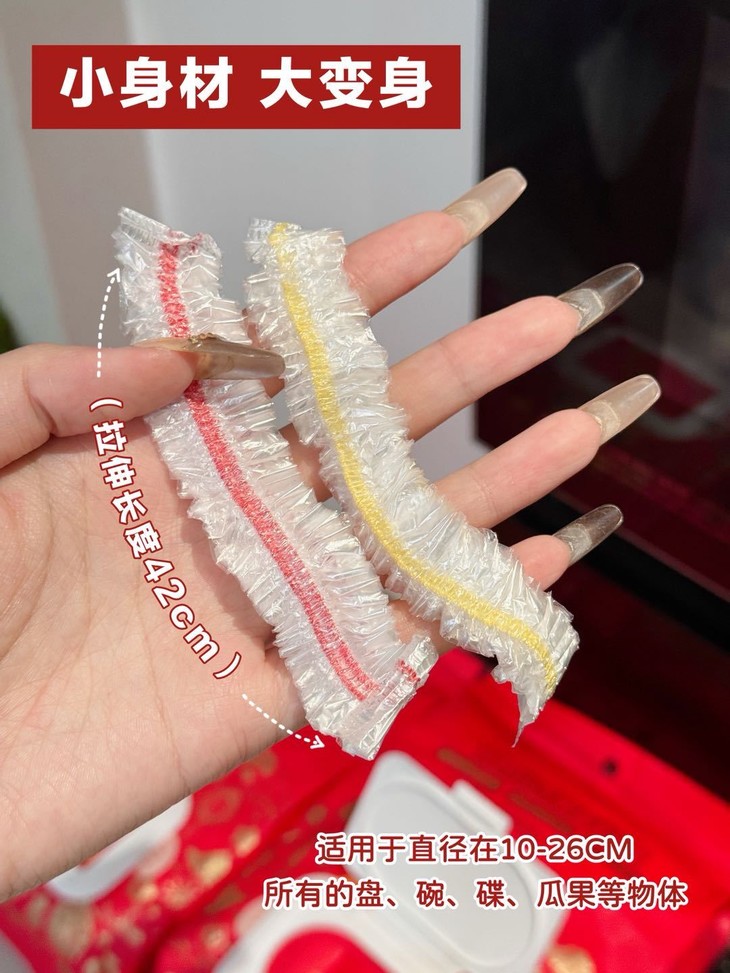 松紧设计轻轻一拉,碗盘就能密封得牢牢的! 无论大小碗盘都没问题! 🍽🌟最重要的是,它还能放冰箱哦! 不用担心食物串味啦!真是太方便了! 让你从此告别保鲜膜都要拉扯半天, 食材保鲜期短的困境!