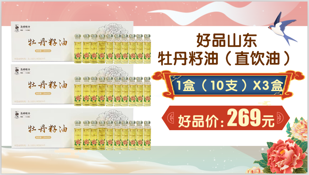 好品山东牡丹籽油,10ml*10瓶/盒,共3盒