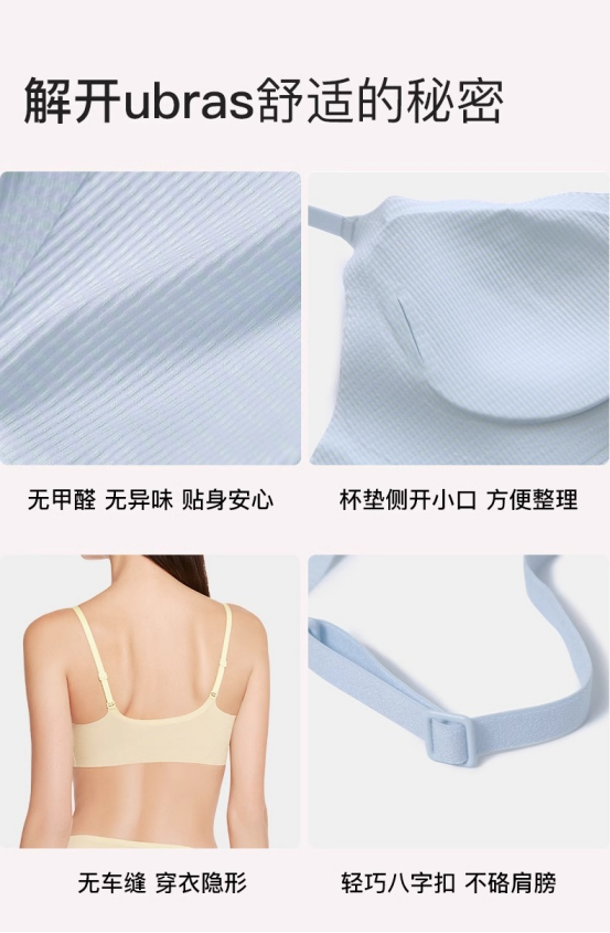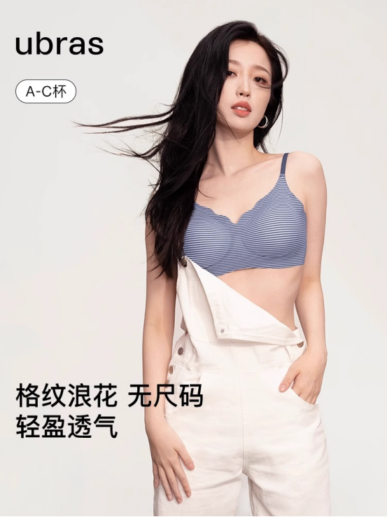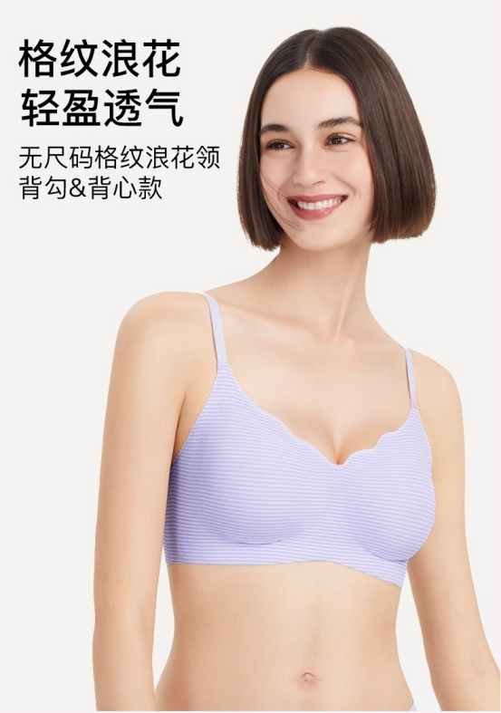 【虞书欣同款】ubras无尺码小凉风格纹浪花领云感托文胸背勾款A-C杯✅无尺码设计一件适配A-C杯,不用试也如定制般合身 ✅前底围W型云感防窜条,透气承托不勒肉,更稳定