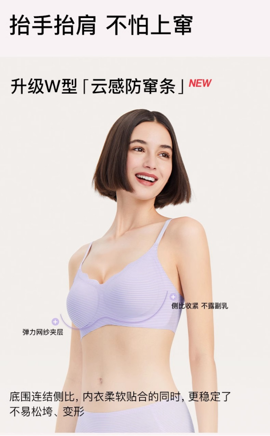 ✅前底围采用W型云感防窜条工艺与进口点胶粘合技术, 透气承托不勒,活动伸展不上窜,舒适包容轻盈显瘦