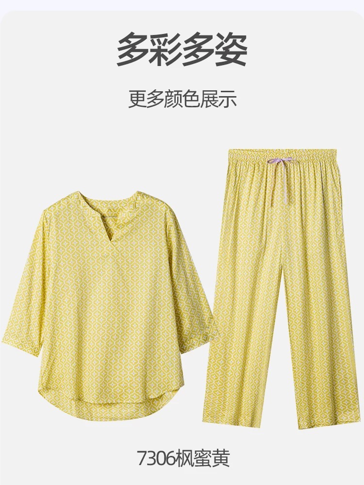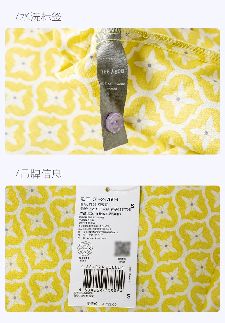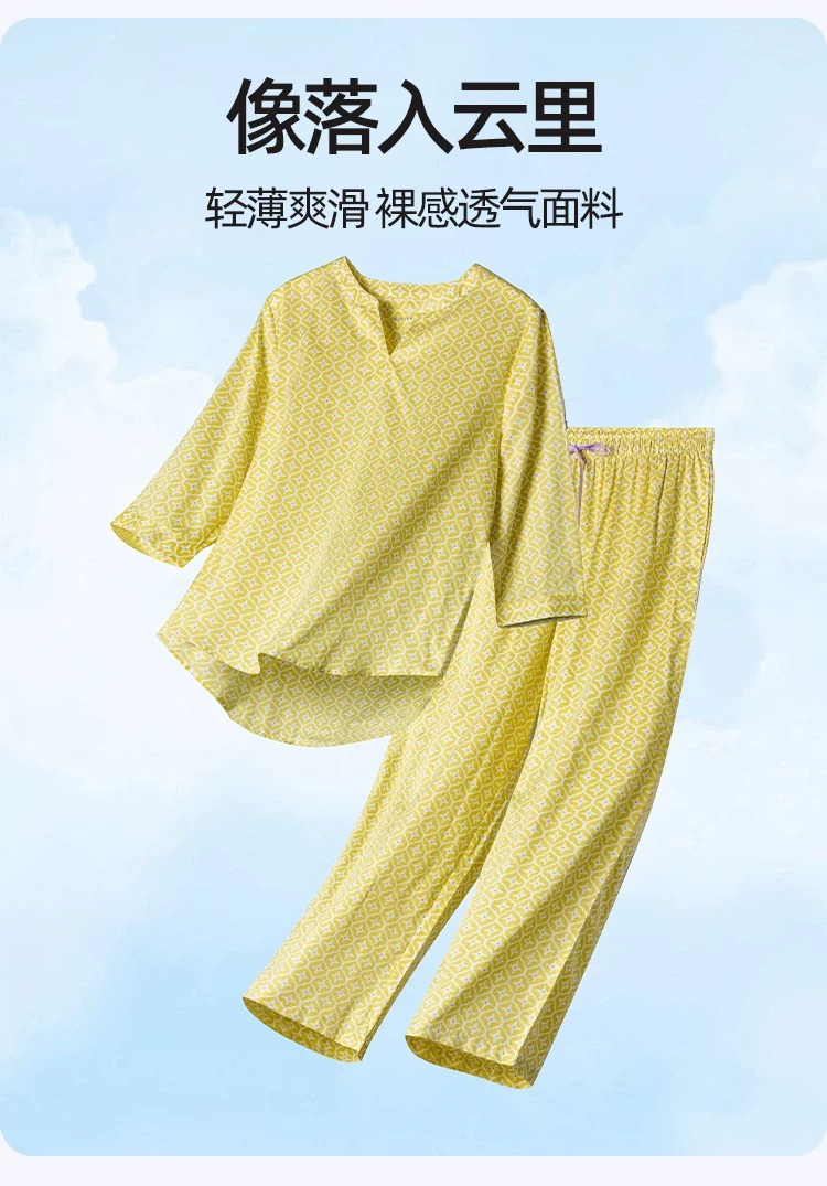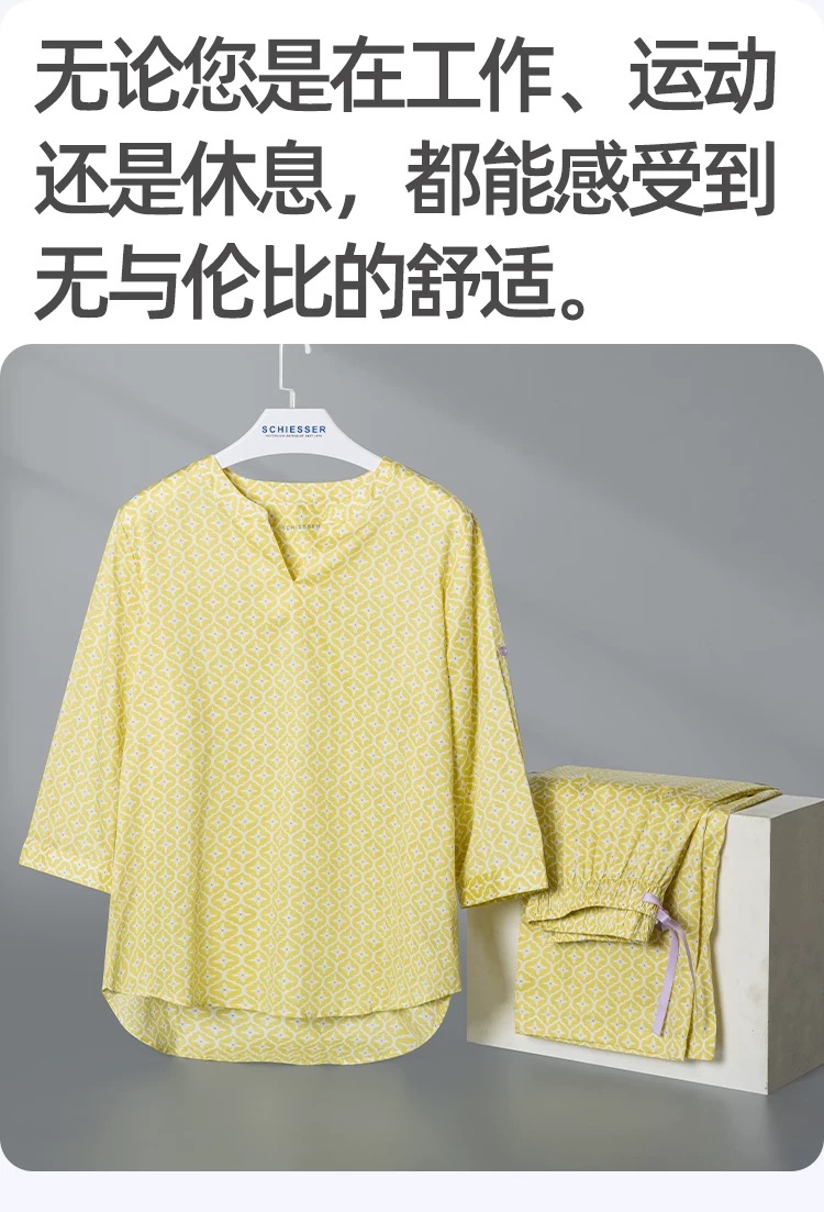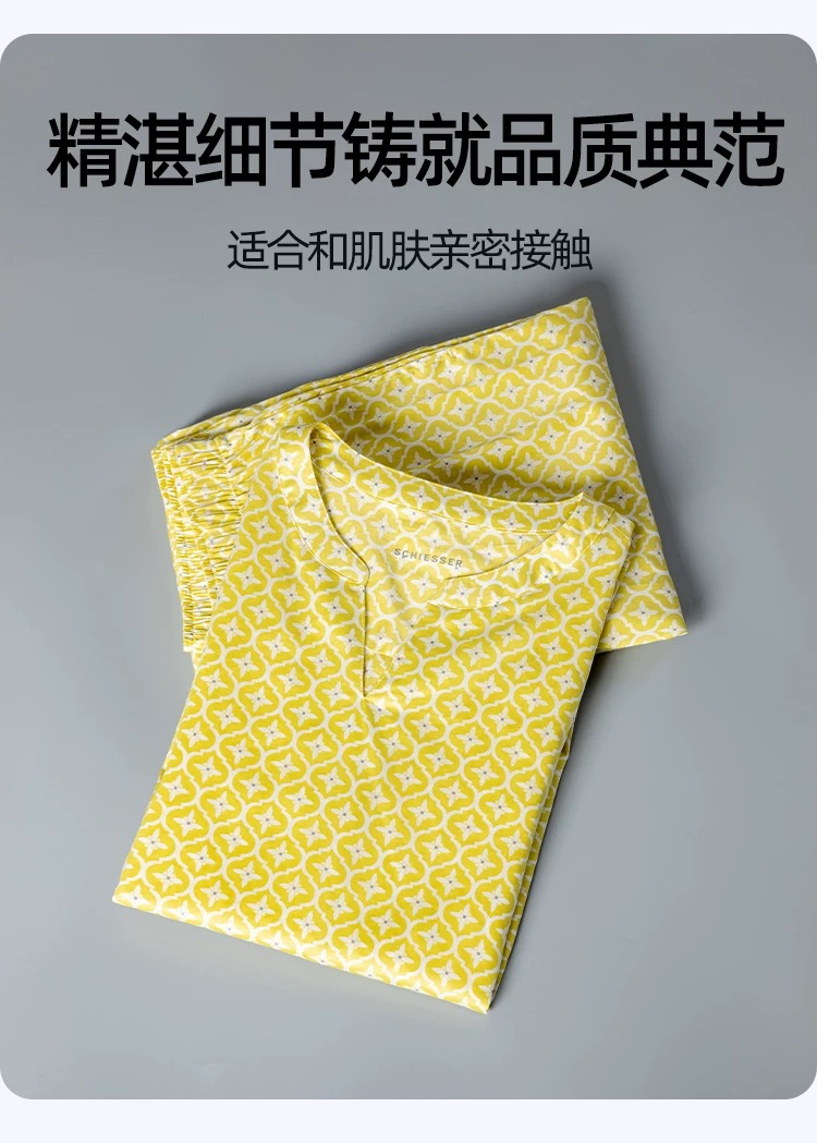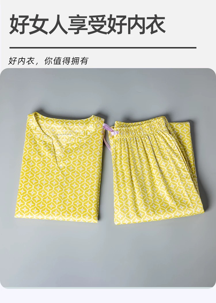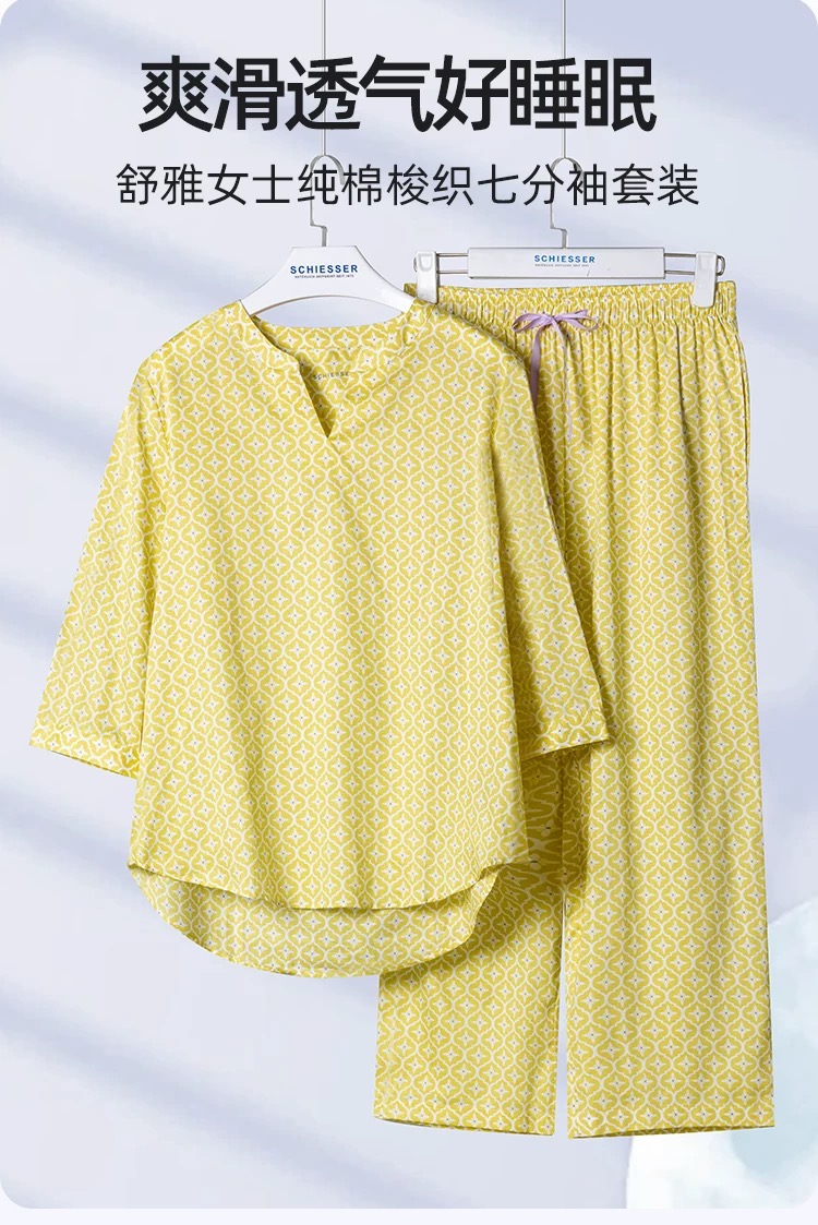 【斜纹梭织100%棉】SCHIESSER德国舒雅女士七分袖九分裤套装100%斜纹梭织面料薄而不透31/24766H