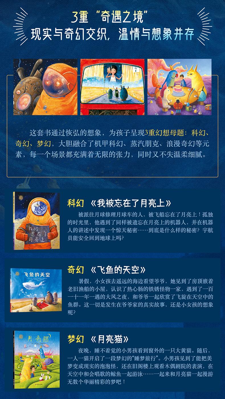 精装3册 奇遇之境 飞鱼的天空 月亮猫 儿童想象力培养绘本给孩子的科幻奇幻梦幻绘本3–6岁幼儿园老师推荐4-5岁以上故事书大班阅读