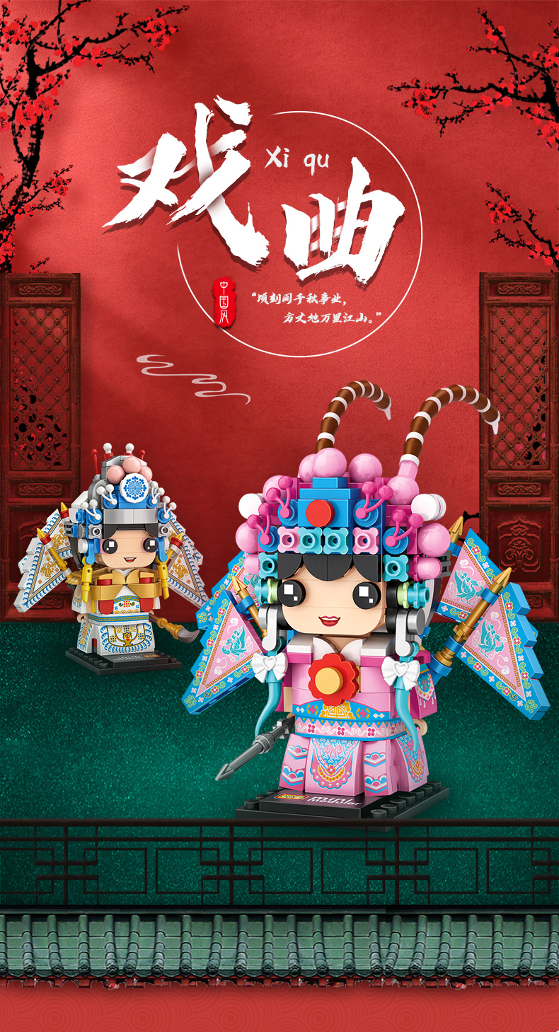 LOZ俐智方头仔京剧国潮积木小颗粒戏曲积木拼装模型玩具男孩女友生日礼物