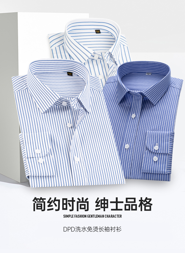 【免烫长袖衬衫(条纹款)】男士通勤长衬 修身耐磨衬衣