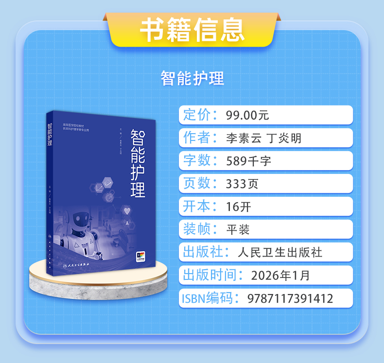 智能护理 高等医学院校教材 李素云 丁炎明 供本科护理学类专业用 智能护理技术智能护理应用现状等 9787117391412 人民卫生出版社
