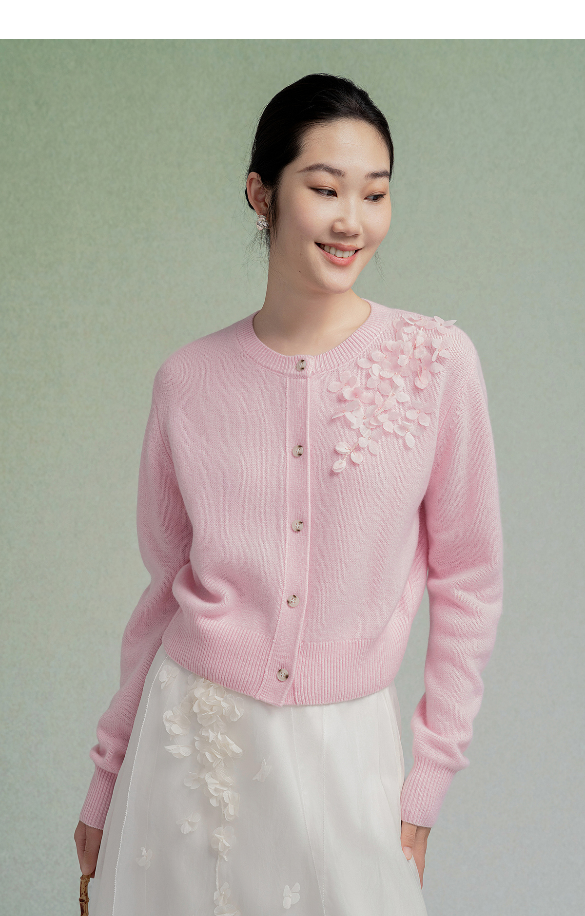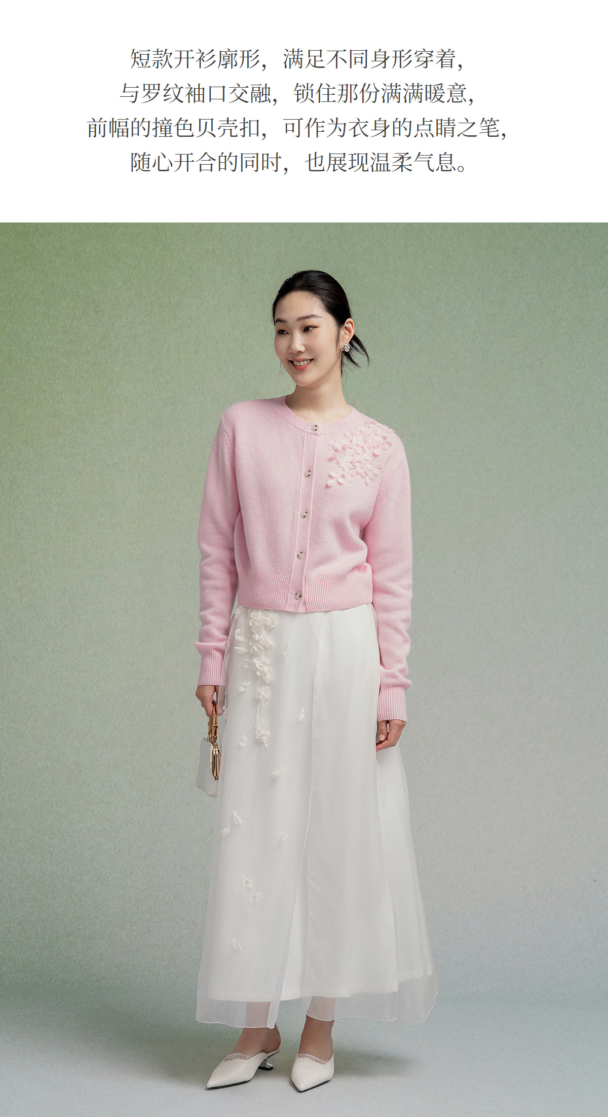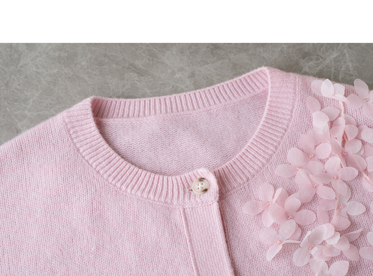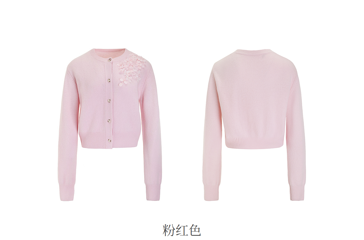 【林栖设计小店】【手工钉花】绵羊毛毛织开衫百搭2025秋季新款粉外套上衣毛衣女F1953241