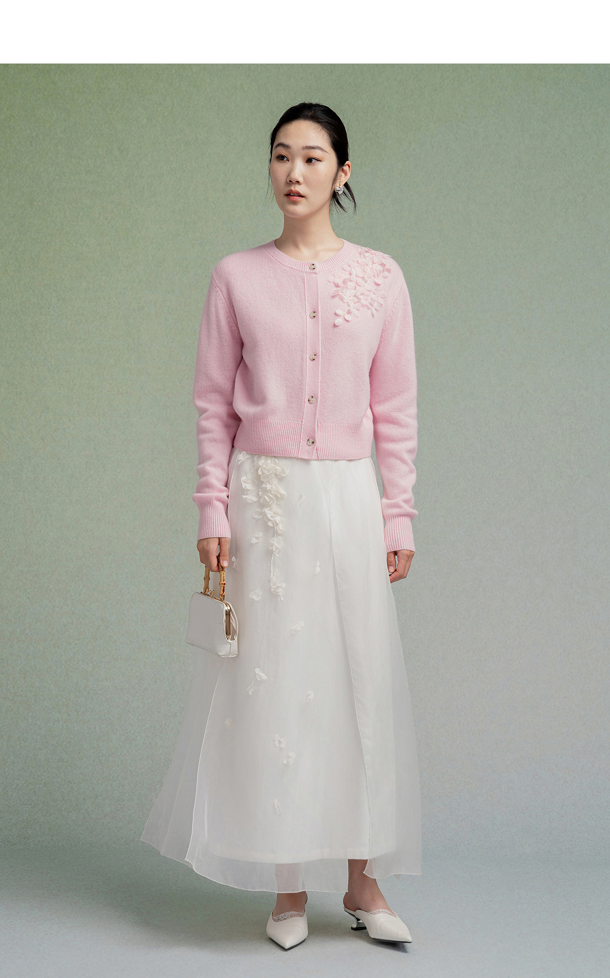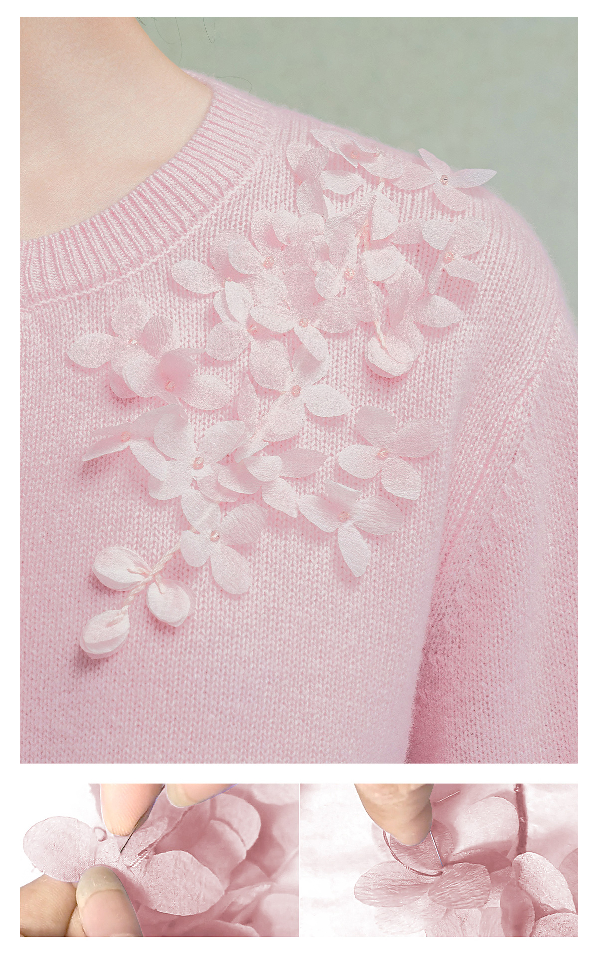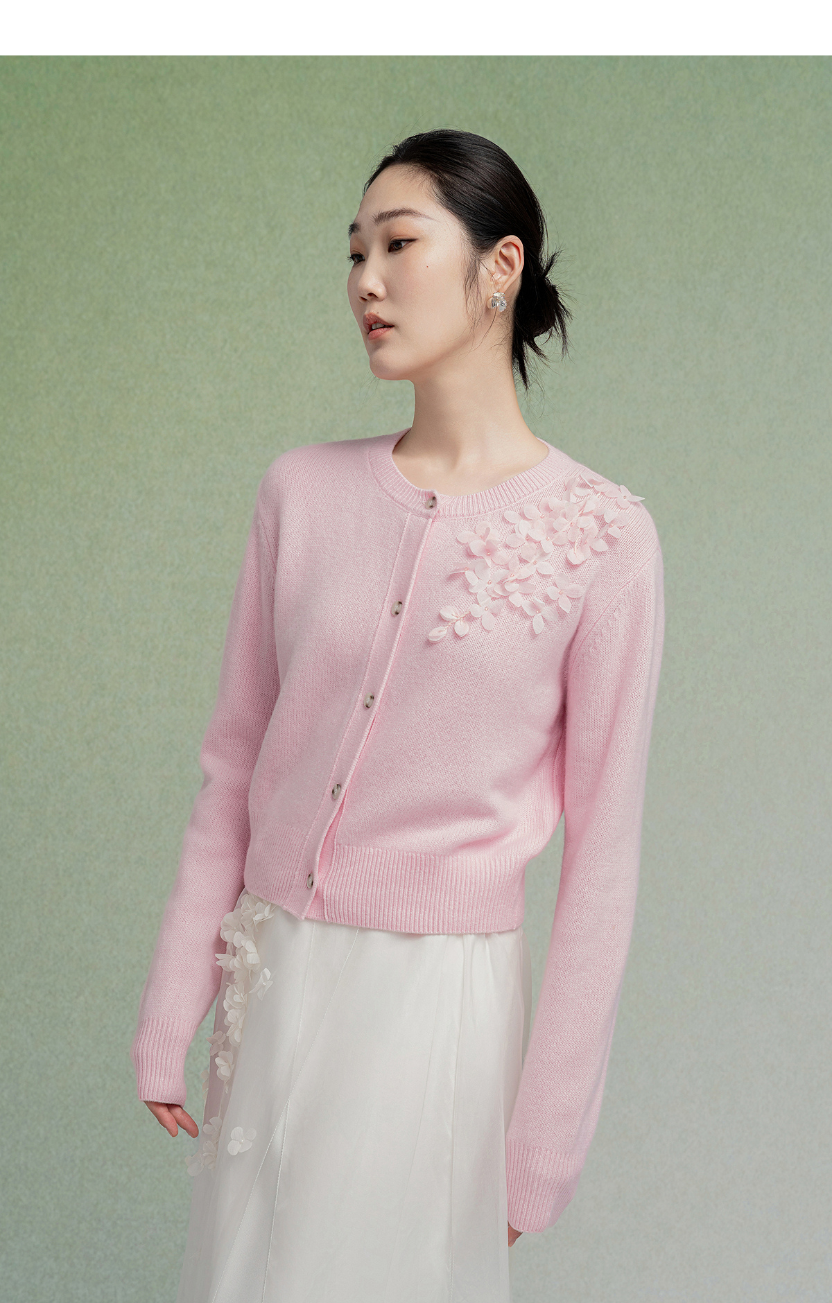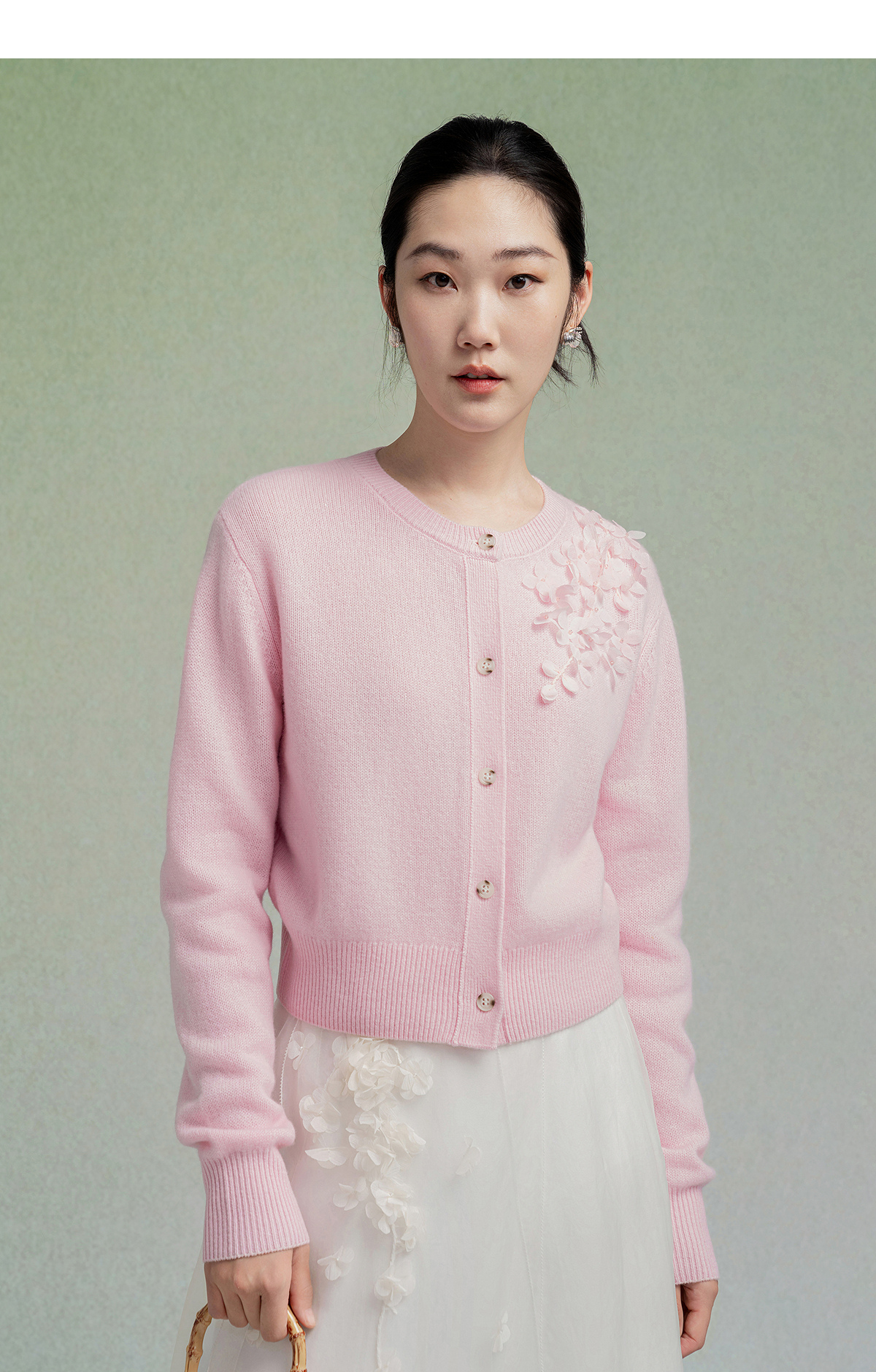 【林栖设计小店】【手工钉花】绵羊毛毛织开衫百搭2025秋季新款粉外套上衣毛衣女F1953241