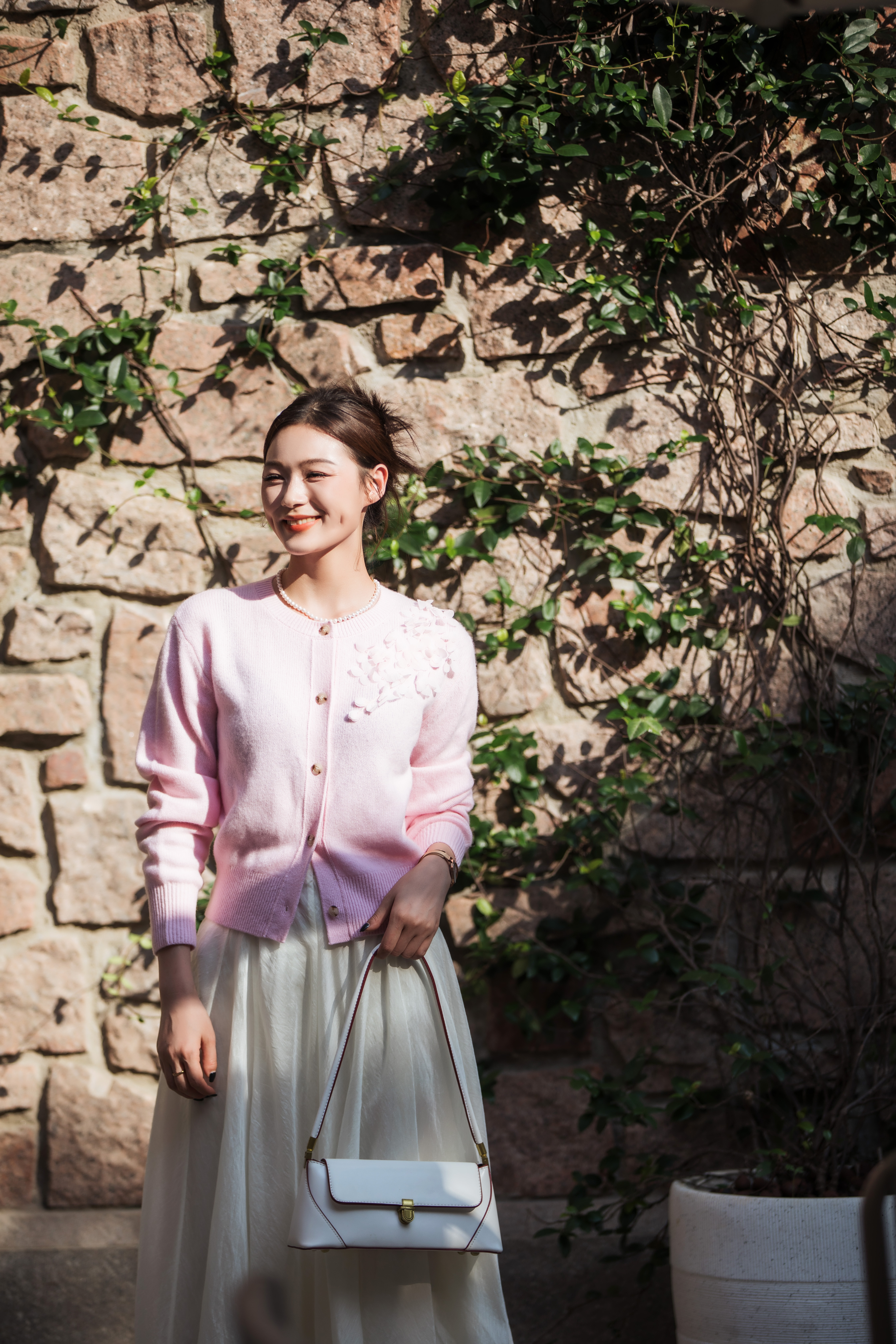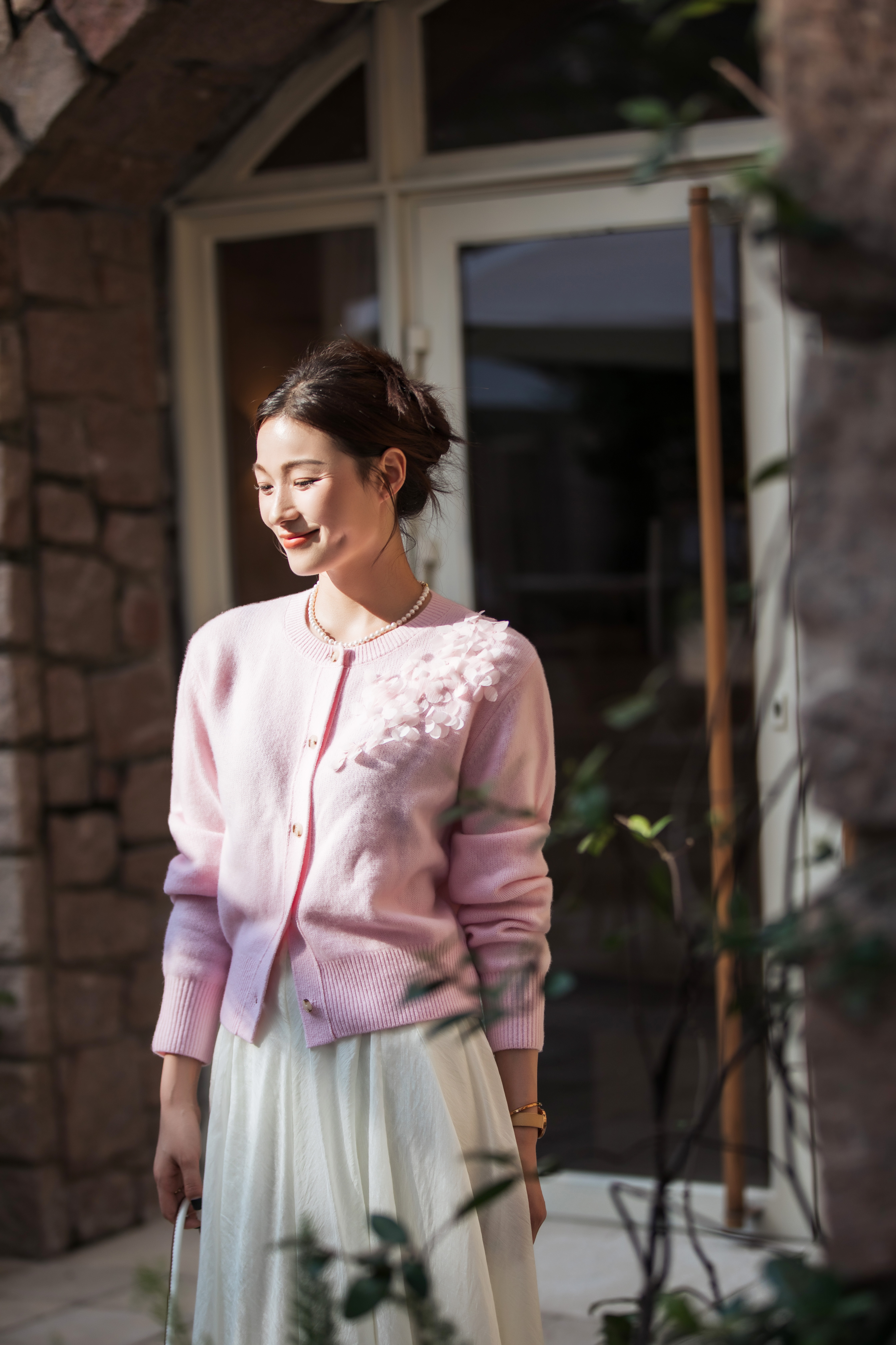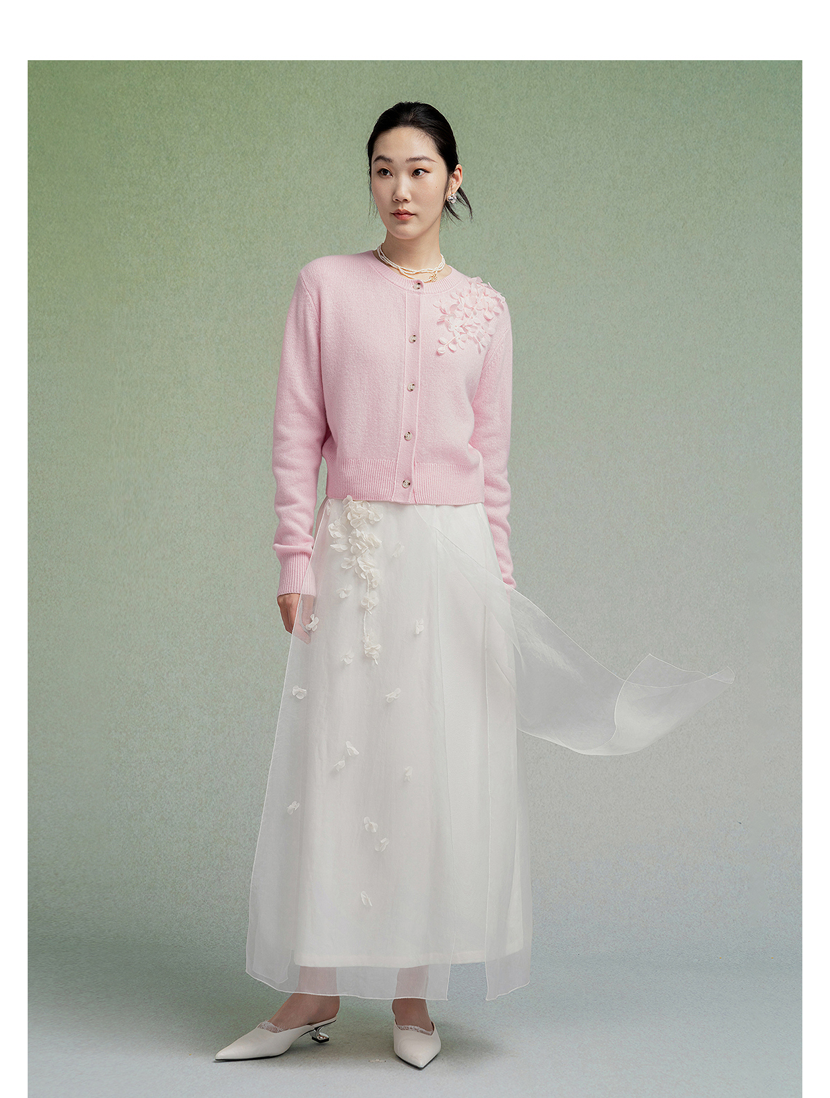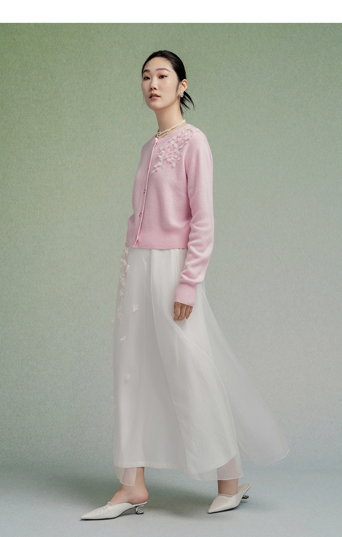 【林栖设计小店】【手工钉花】绵羊毛毛织开衫百搭2025秋季新款粉外套上衣毛衣女F1953241