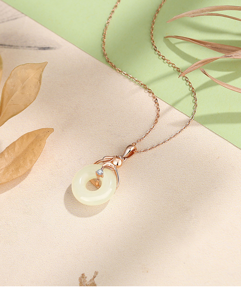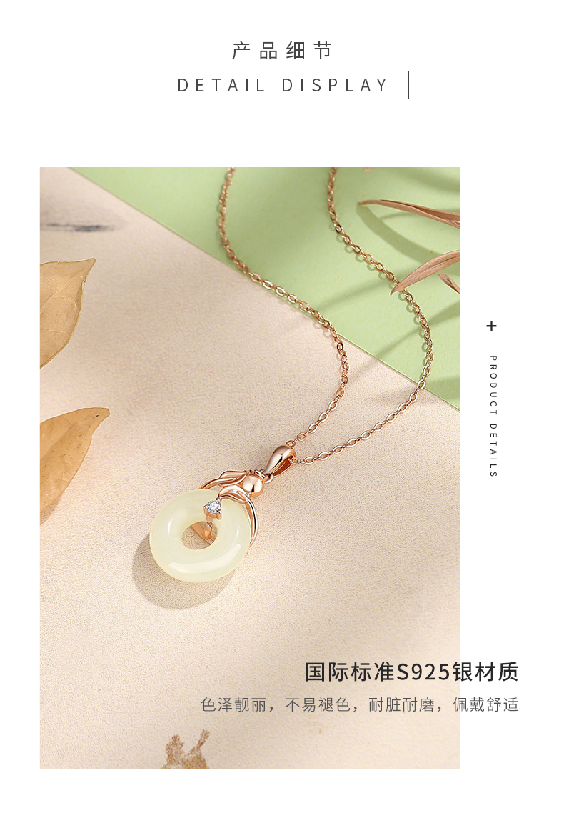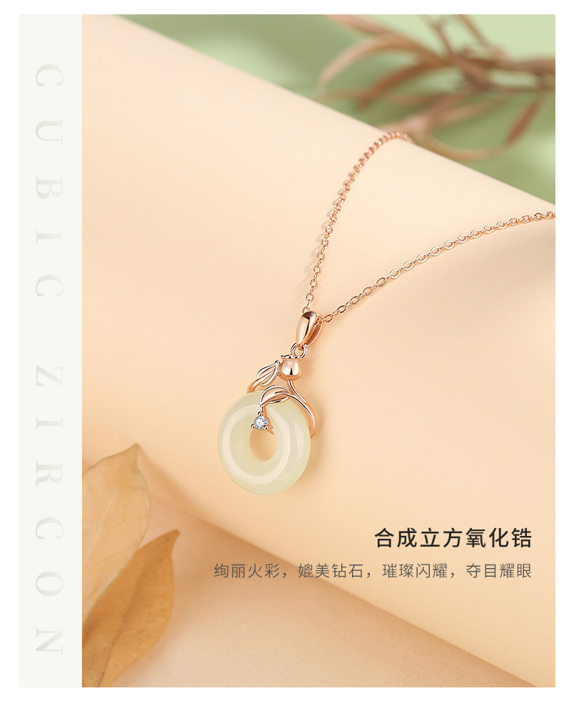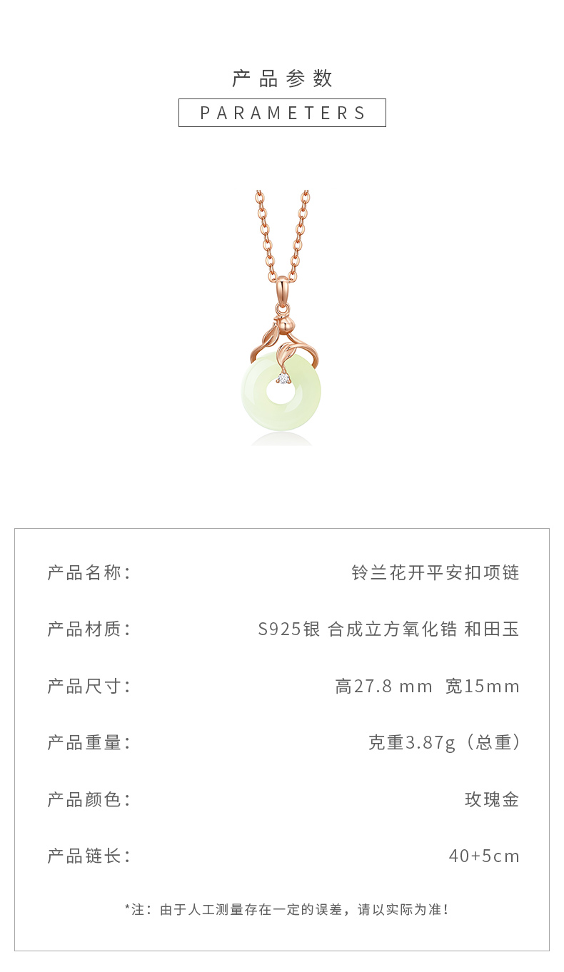 卡蒂罗/KADER 铃兰花开平安扣项链 新中式国潮好运玉满银镶玉锁骨链 小众显白毛衣清冷如意 本命年蛇年转运平安聚财