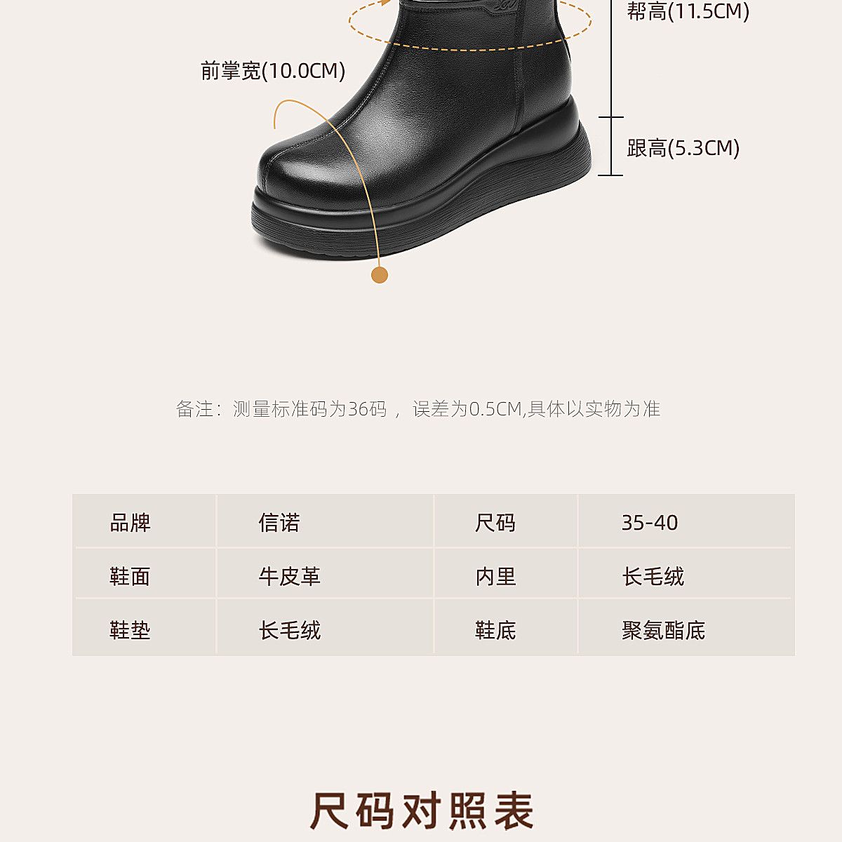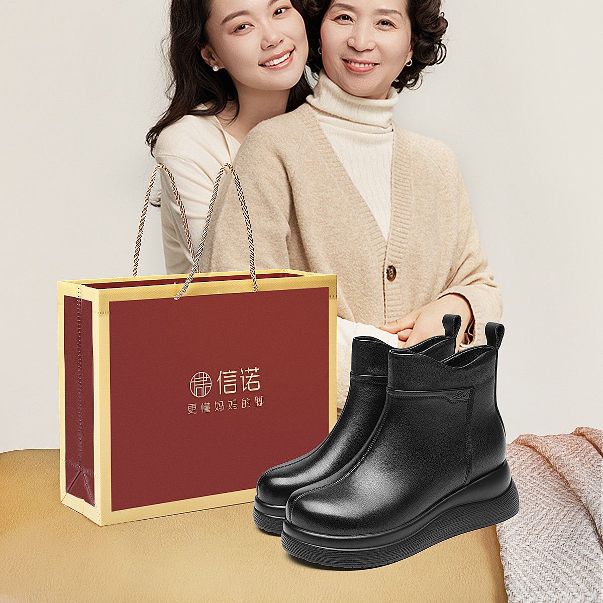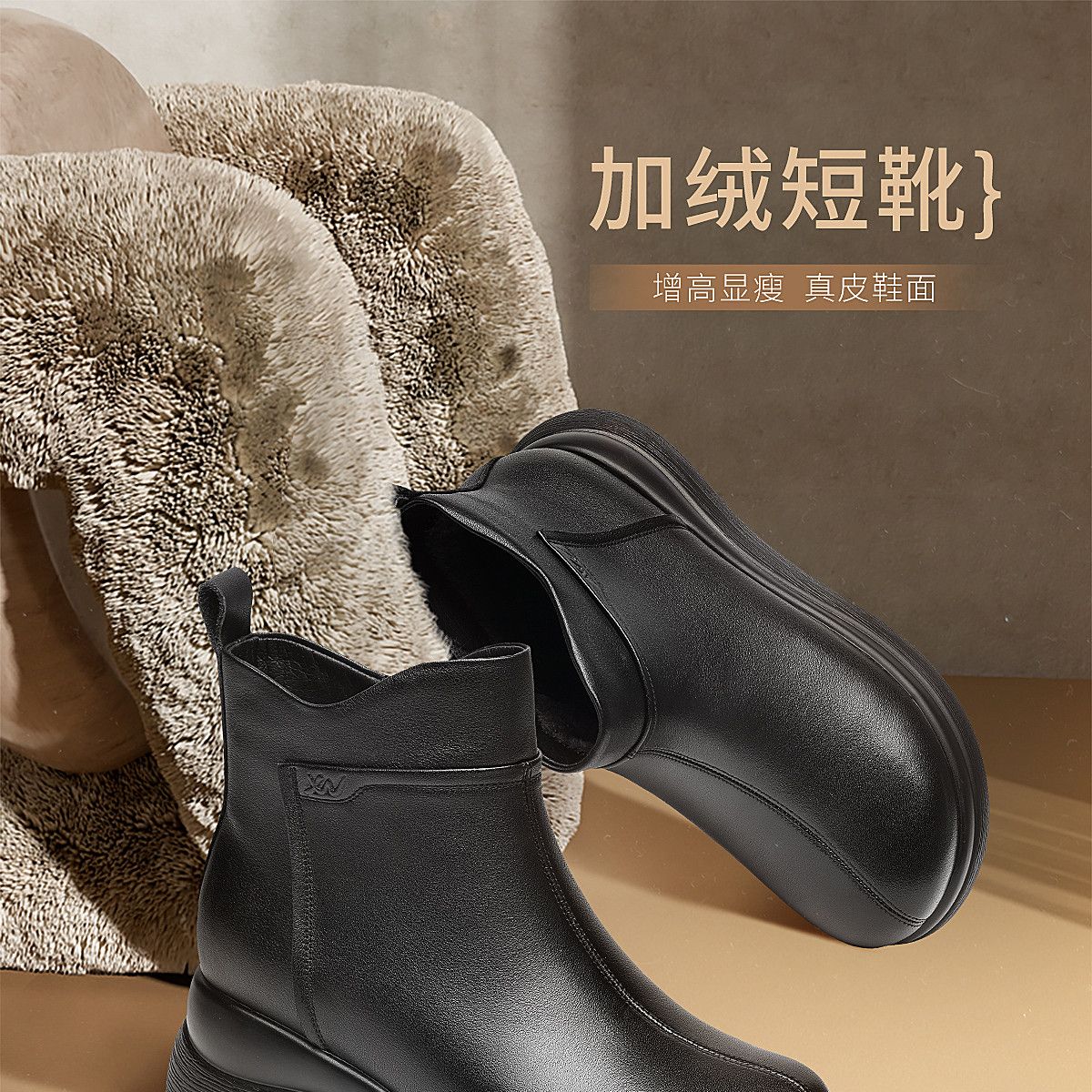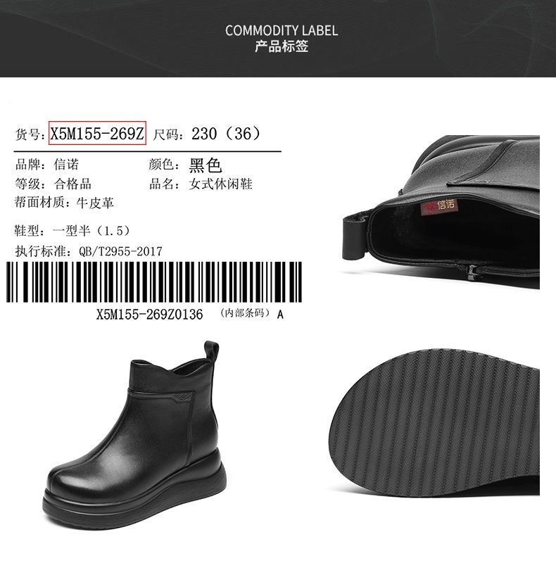 信诺真皮妈妈鞋女厚底增高短靴切尔西靴2025冬季新款加绒加厚棉鞋X5M155-269Z