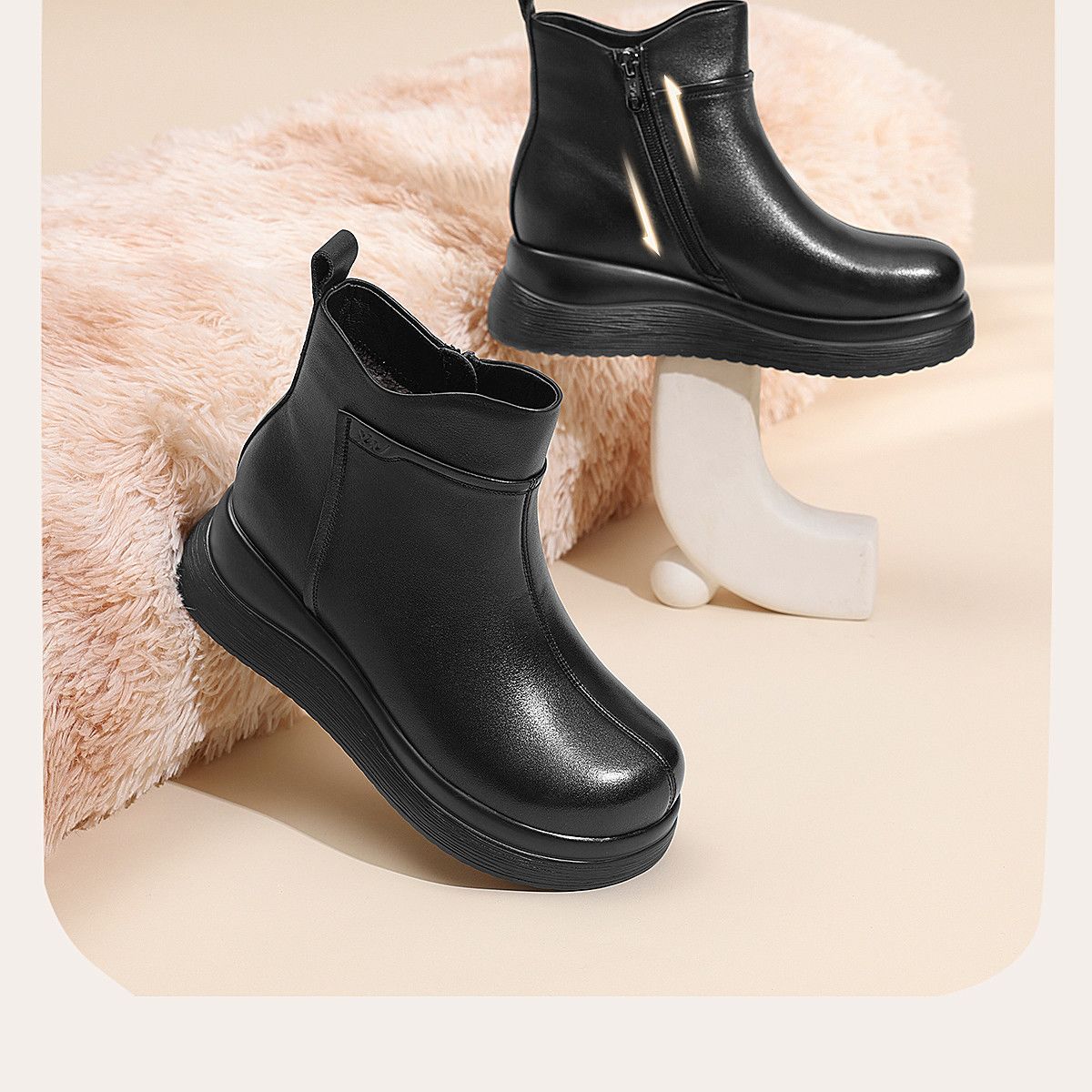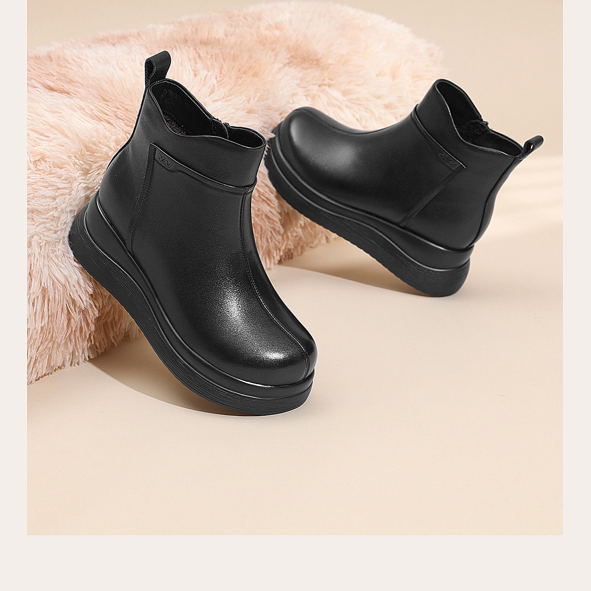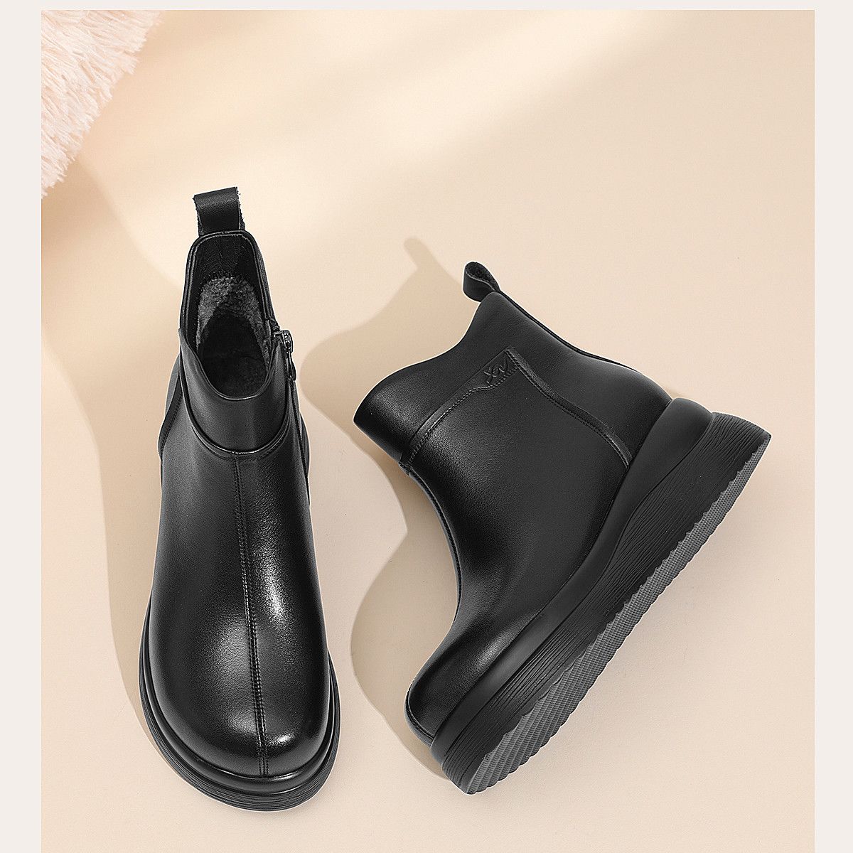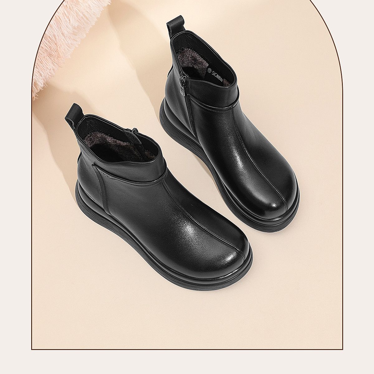 信诺真皮妈妈鞋女厚底增高短靴切尔西靴2025冬季新款加绒加厚棉鞋X5M155-269Z