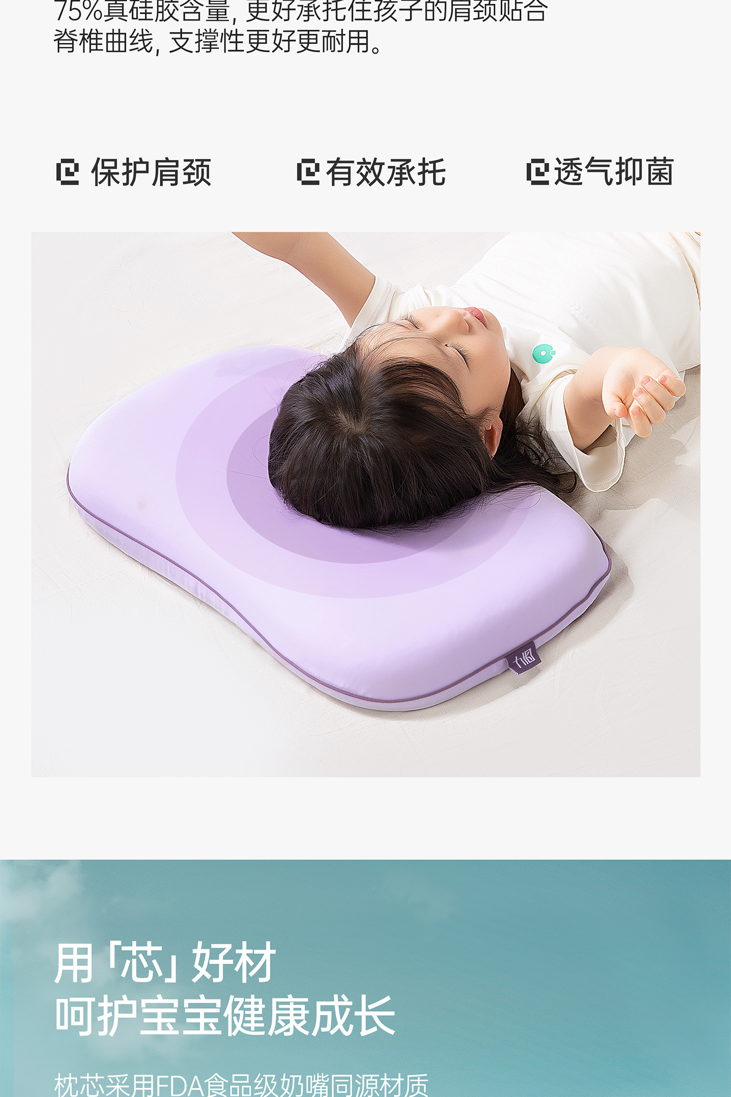 7C七西儿童枕1-6岁宝宝枕婴儿枕6-16岁以上青少年枕高温水洗硅胶