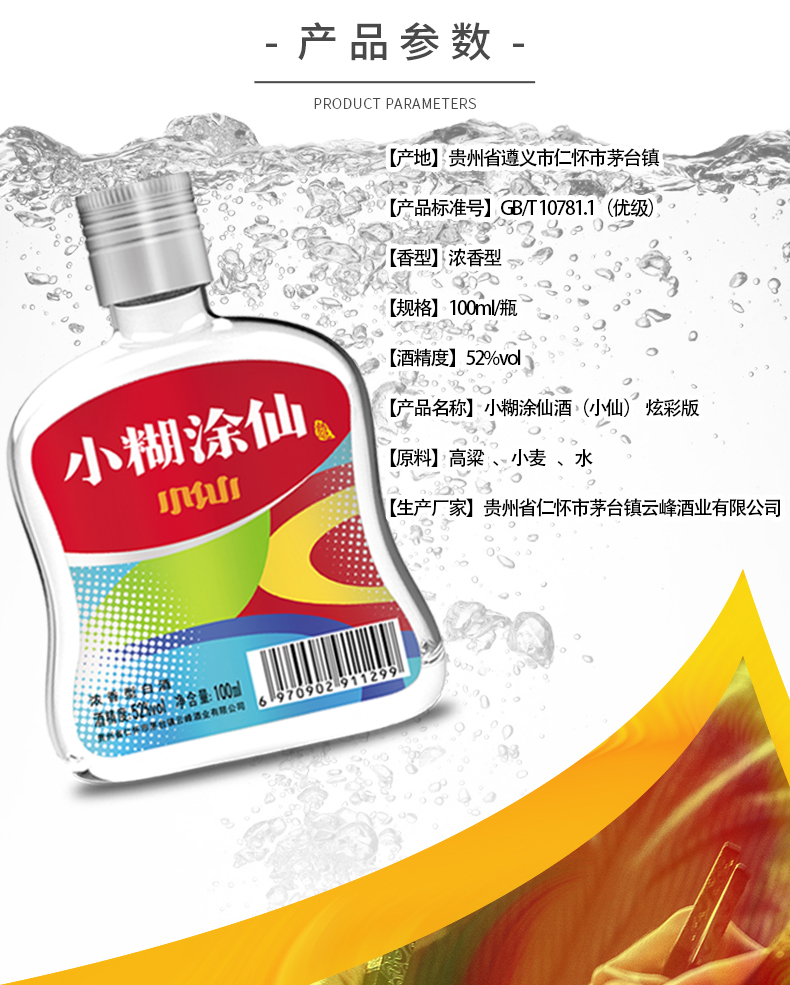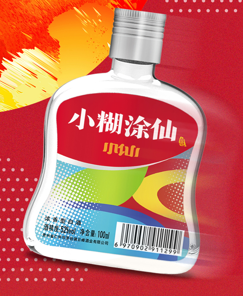 小糊涂仙(炫彩版小仙酒)白酒浓香型52度小酒光瓶粮食酒裸瓶装 52度 100mL 1瓶