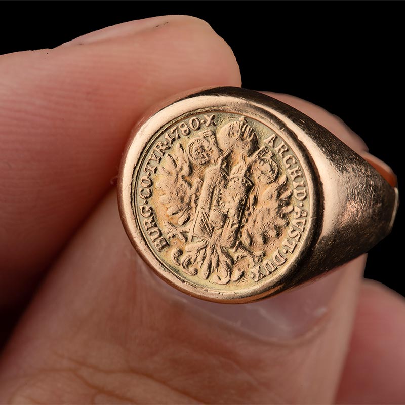 1780年代奥地利出品黄金戒托镶嵌玛丽亚·特蕾西亚古金币戒指