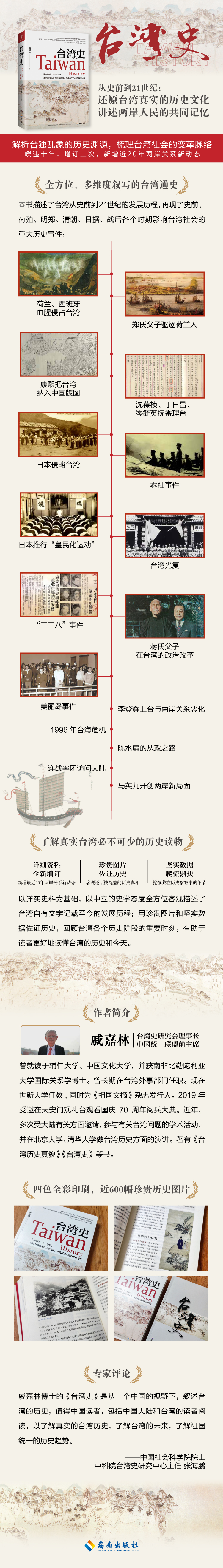 戚嘉林博士的《台湾史》是从一个中国的视野下,叙述台湾的历史,值得中国读者,包括中国大陆和台湾的读者阅读,以了解真实的台湾历史,了解台湾的未来,了解祖国统一的历史趋势。