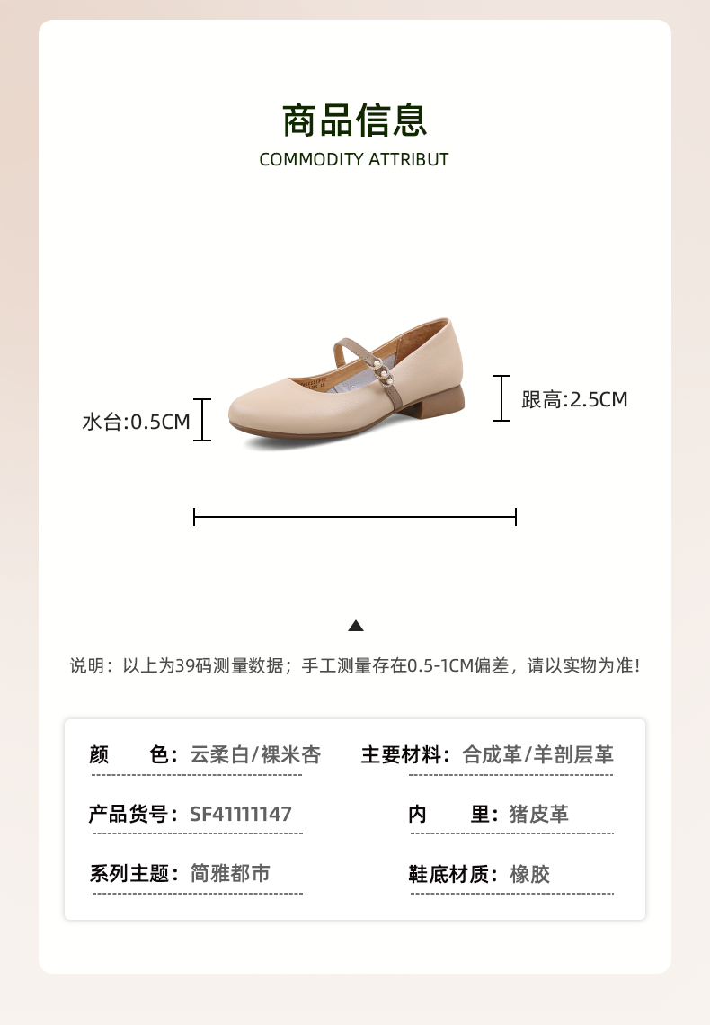 Safiya/索菲娅 2024春夏圆头浅口软底珍珠气质仙女风单鞋 SF41111147