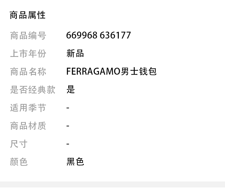 FERRAGAMO 菲拉格慕 男士票夹 黑色 66 9968 636177