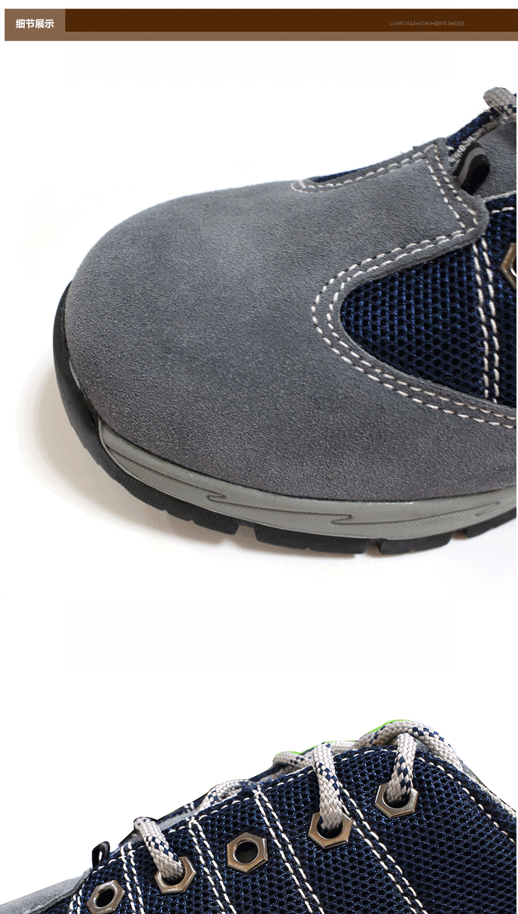 硕达休闲款双钢安全鞋防砸防刺反绒牛皮安全标准 透气舒适防砸劳保鞋
