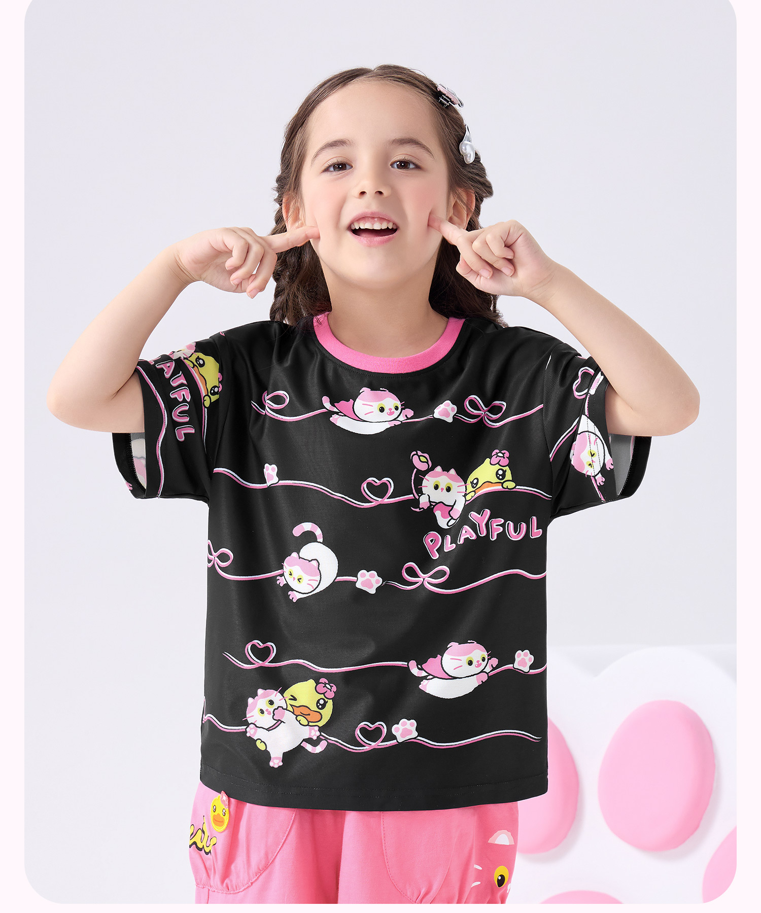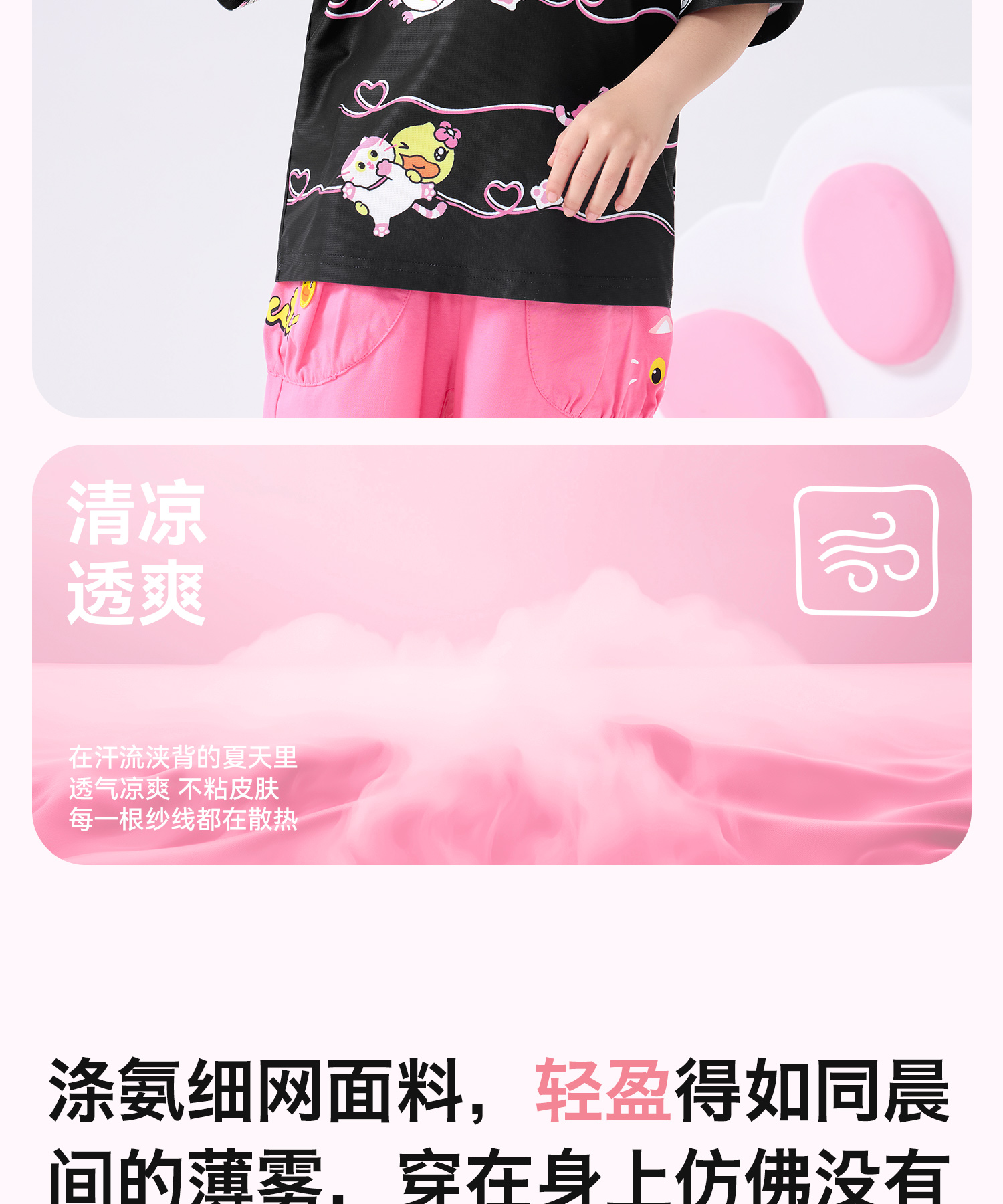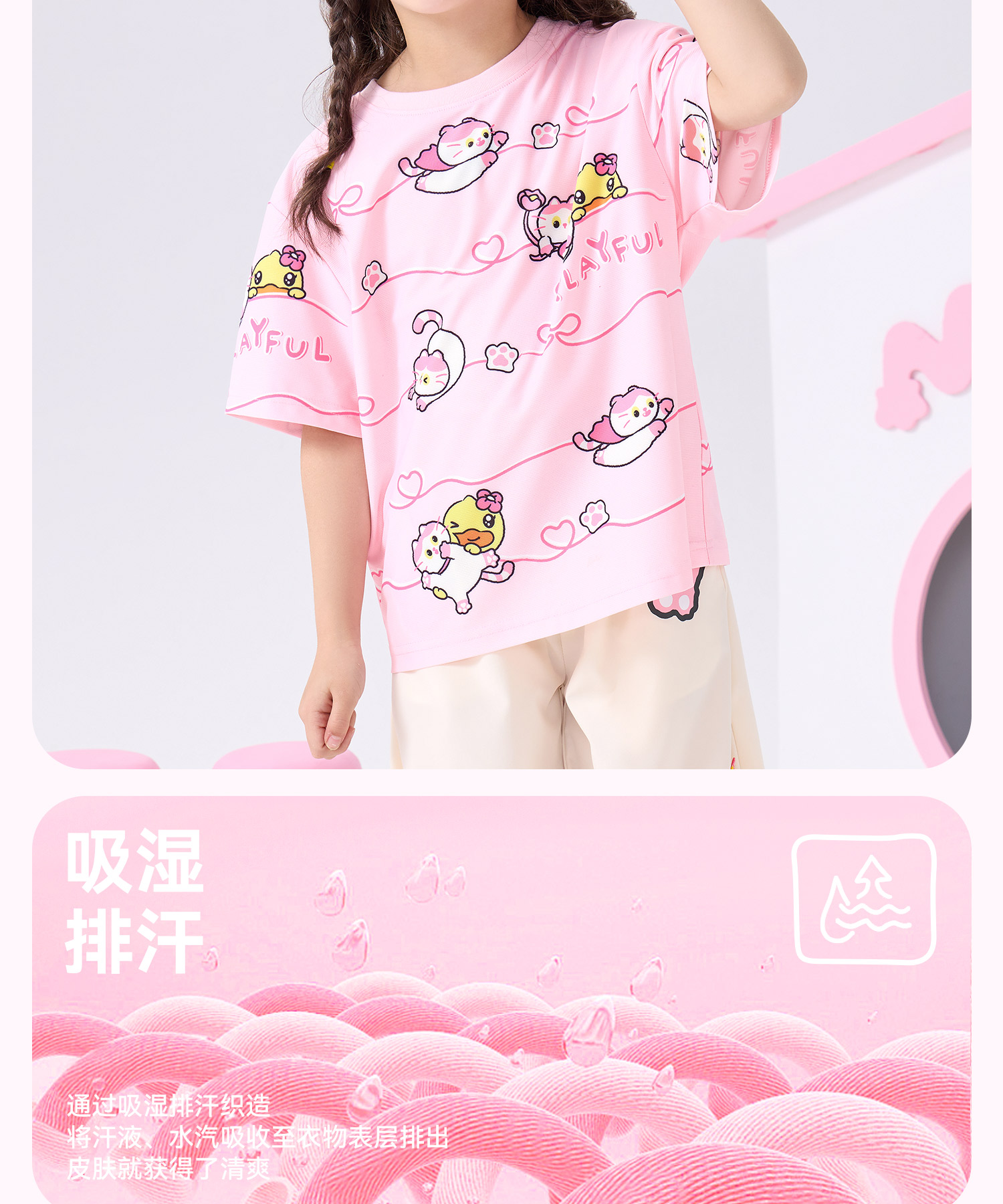 bduck小黄鸭童装夏季女童短袖T恤儿童夏装细网透气小女孩半袖上衣薄款105-150 FF2601021