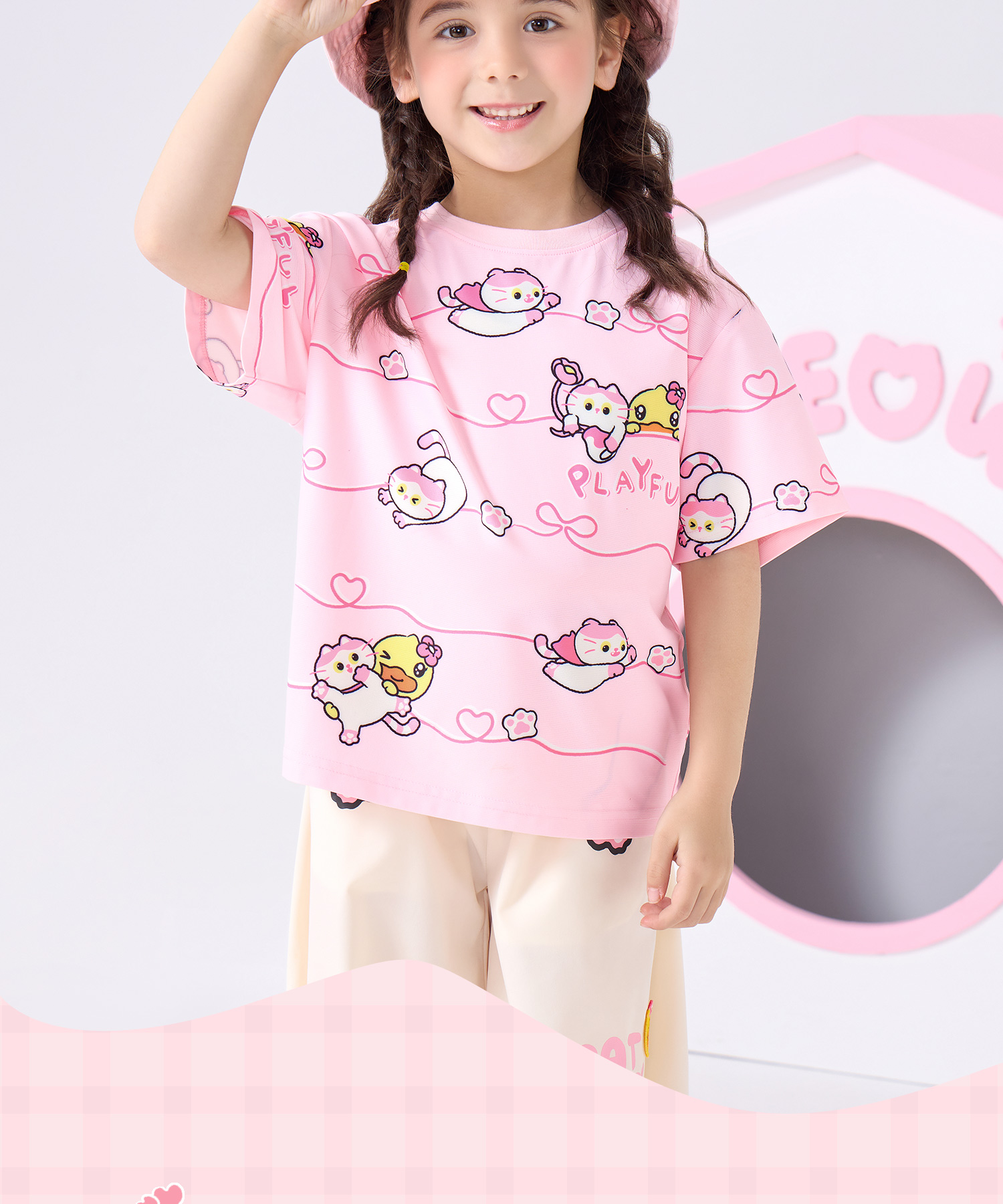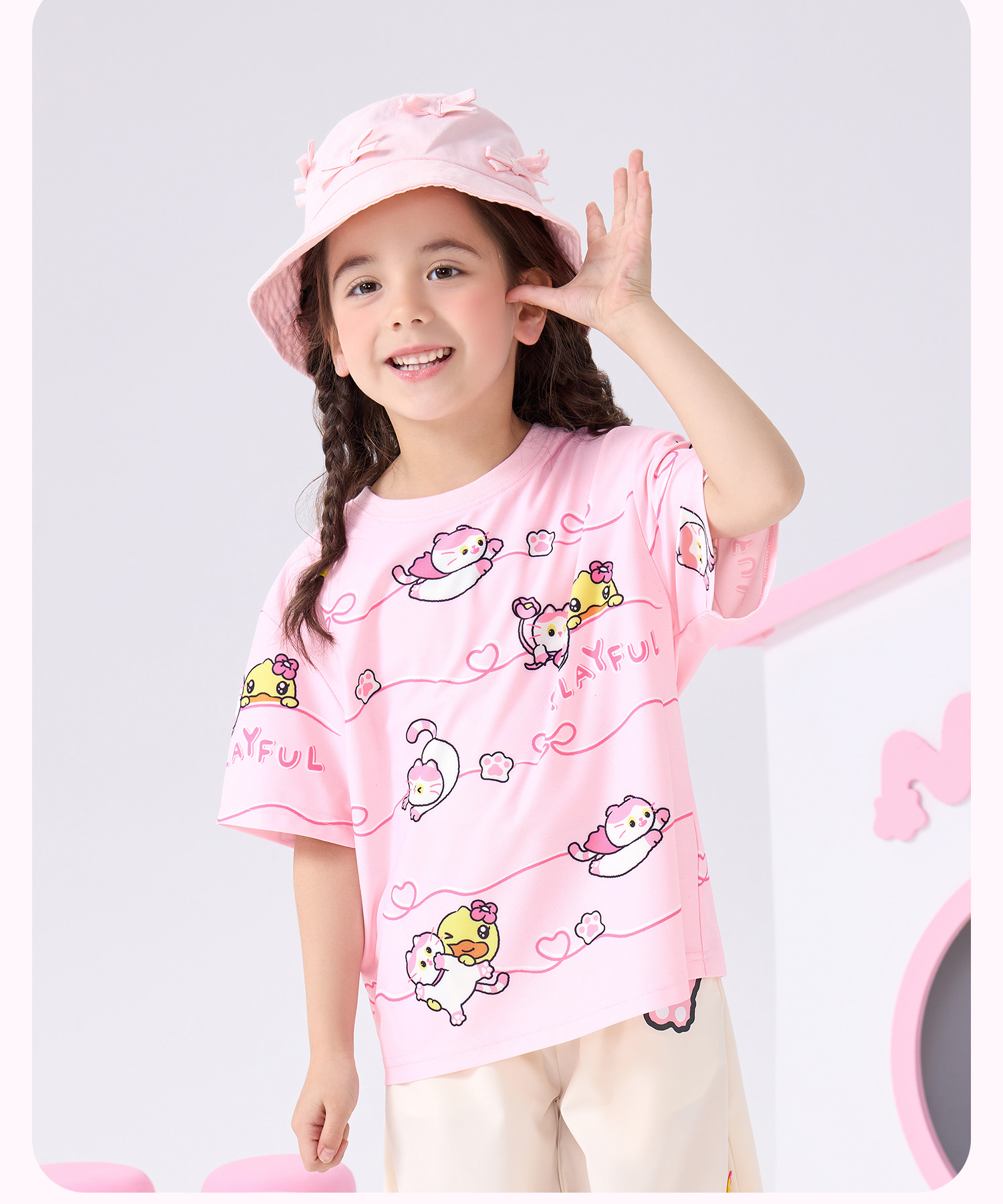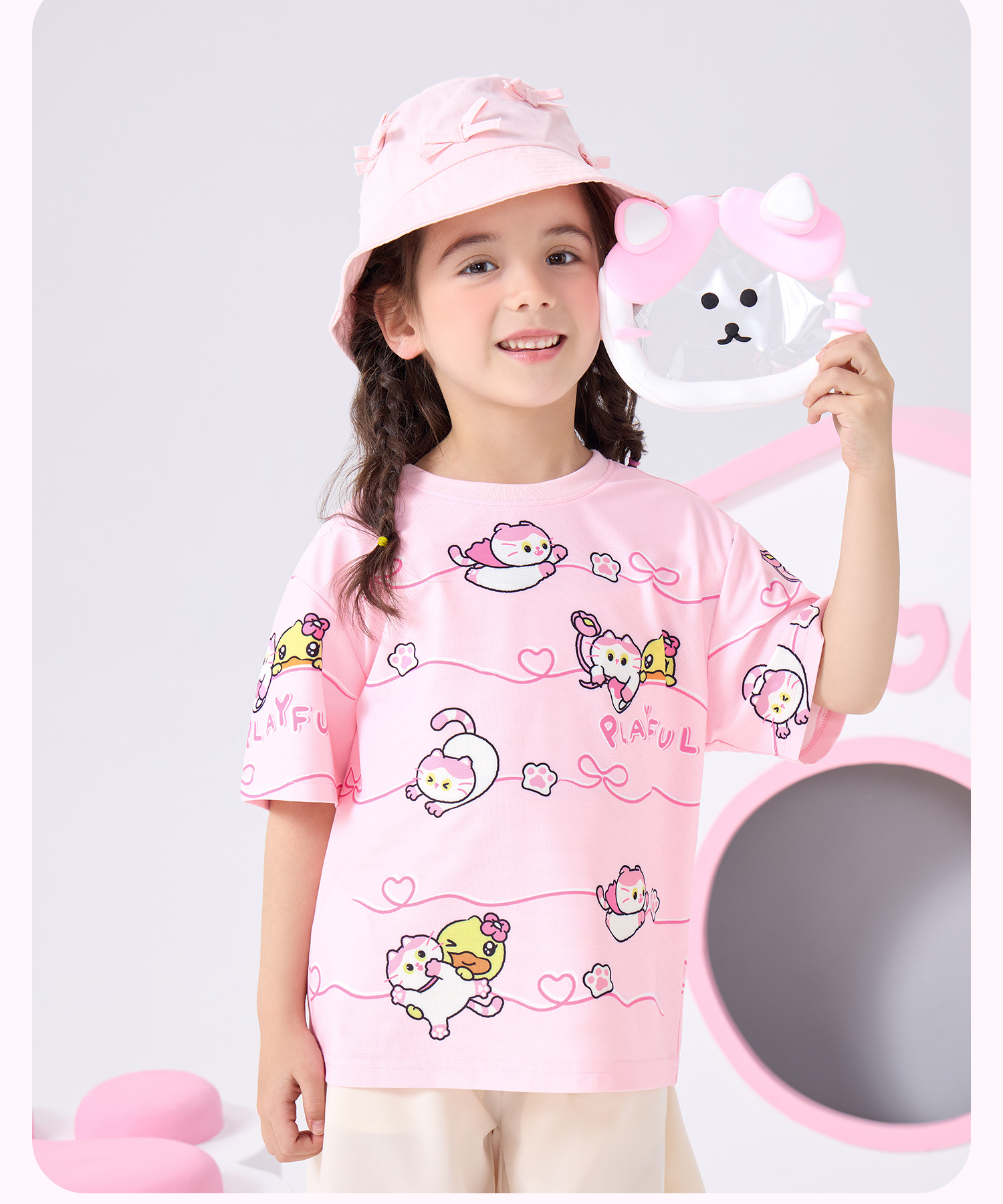 bduck小黄鸭童装夏季女童短袖T恤儿童夏装细网透气小女孩半袖上衣薄款105-150 FF2601021