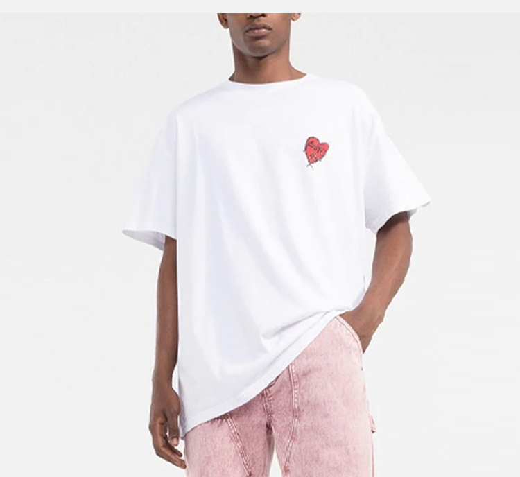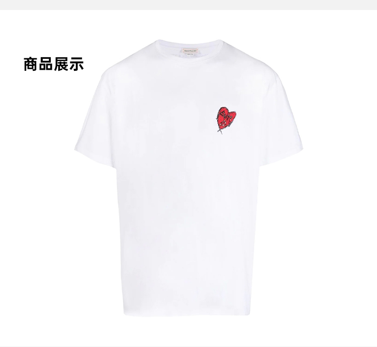 ALEXANDER MCQUEEN 亚历山大.麦昆 男士棉质心形图案徽标印花圆领短袖T恤 白色 711069 QTZ42 0900