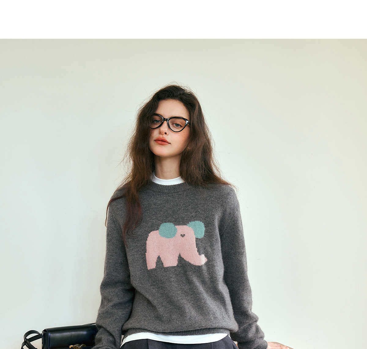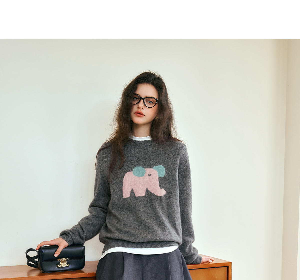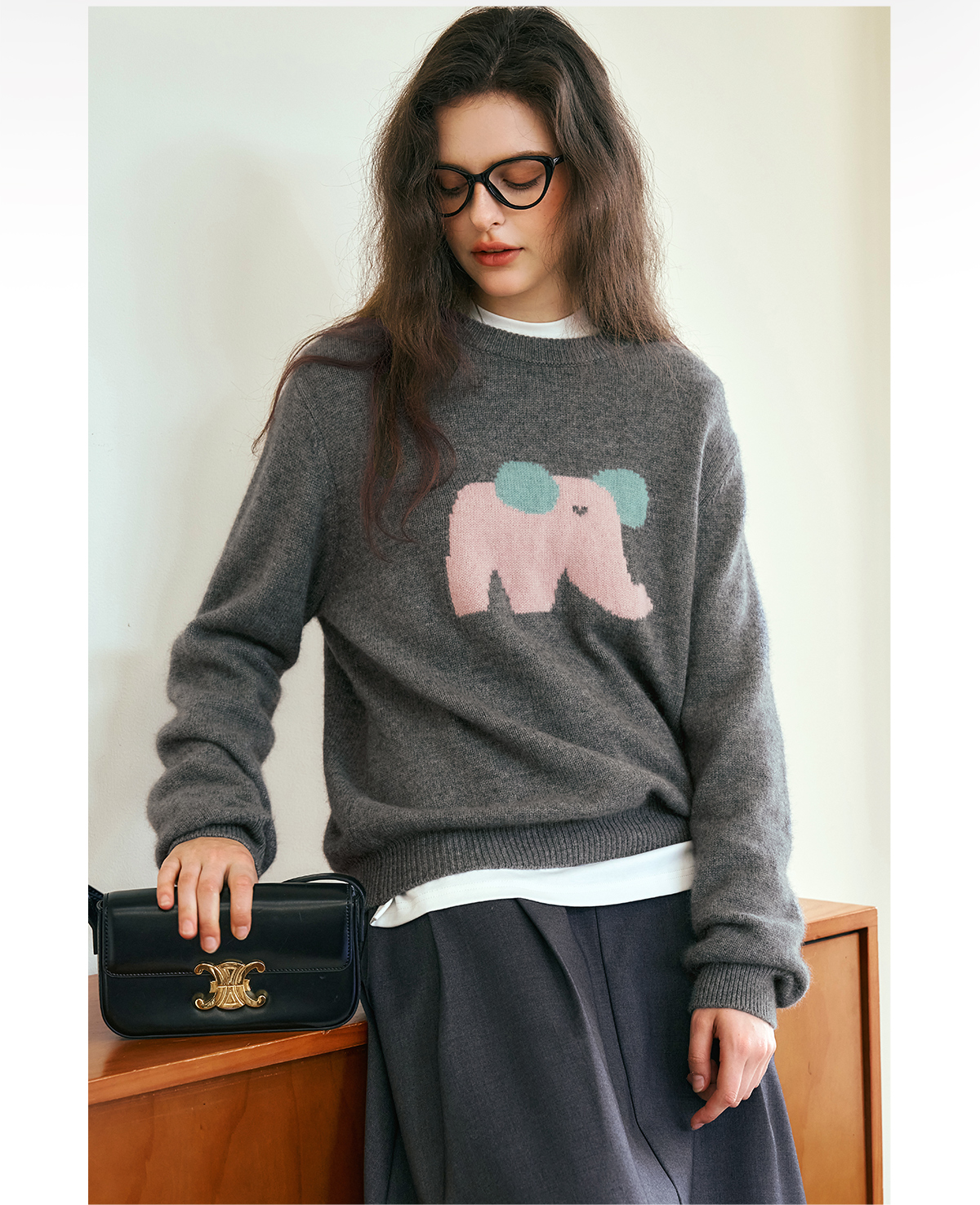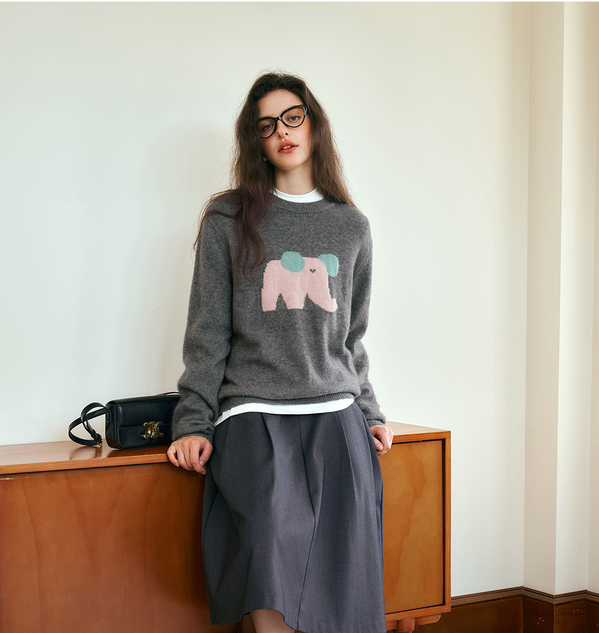 OLrain欧芮儿法式套头毛衣女秋季2024年新款趣味宽松简约休闲上衣
