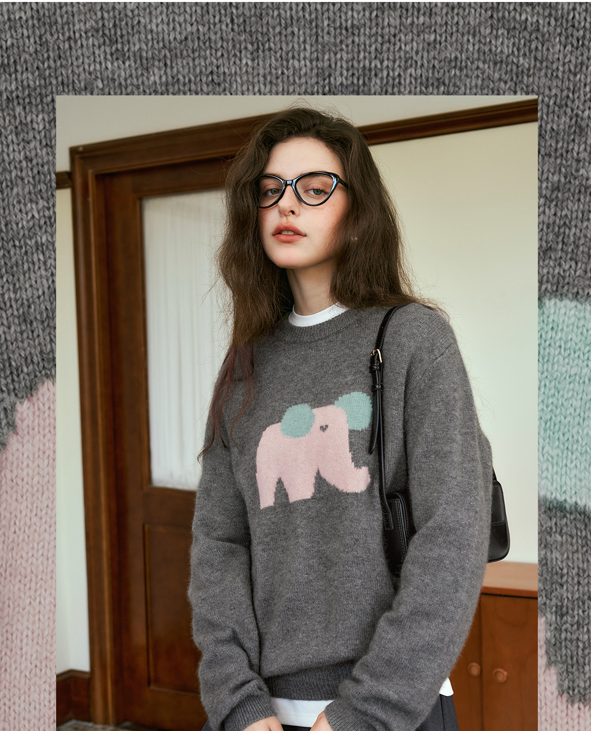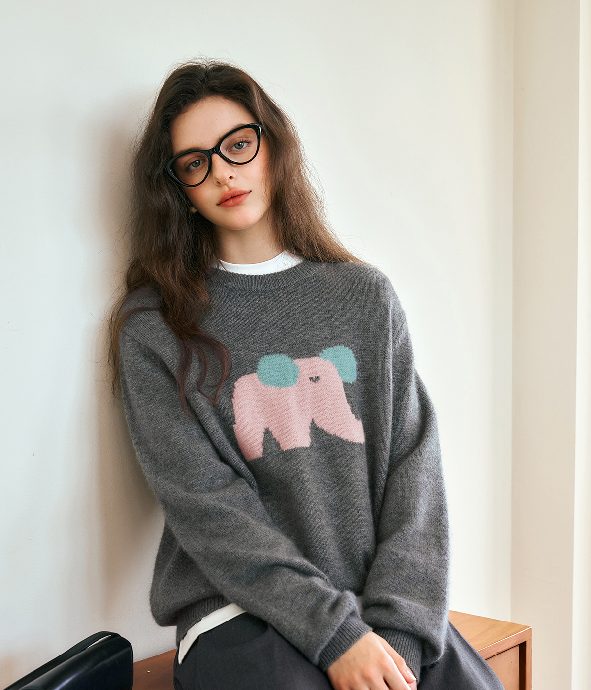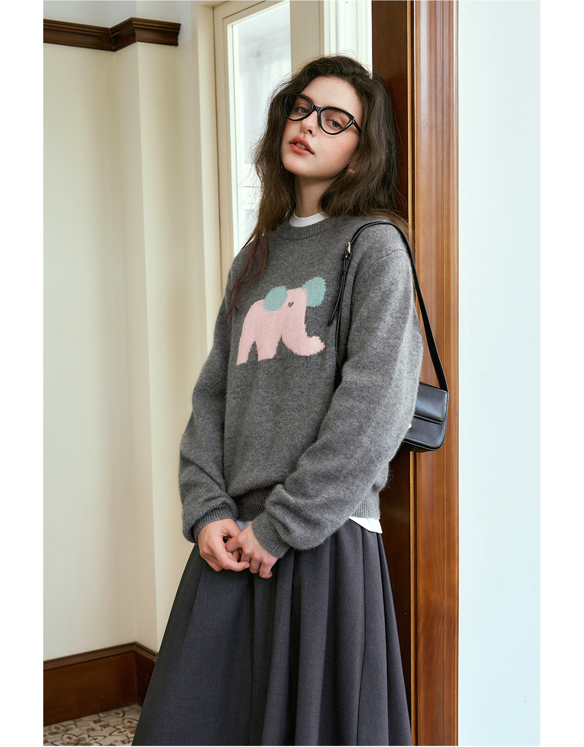 OLrain欧芮儿法式套头毛衣女秋季2024年新款趣味宽松简约休闲上衣