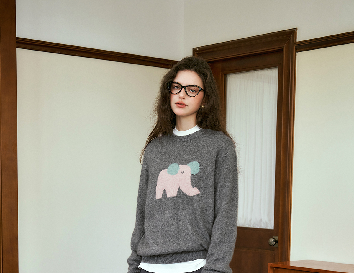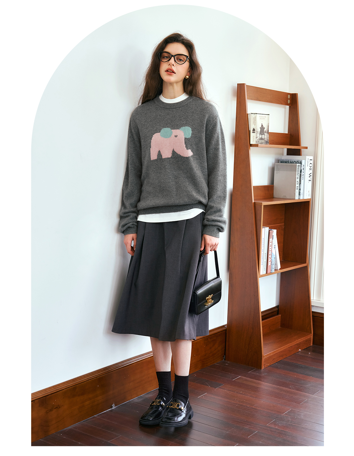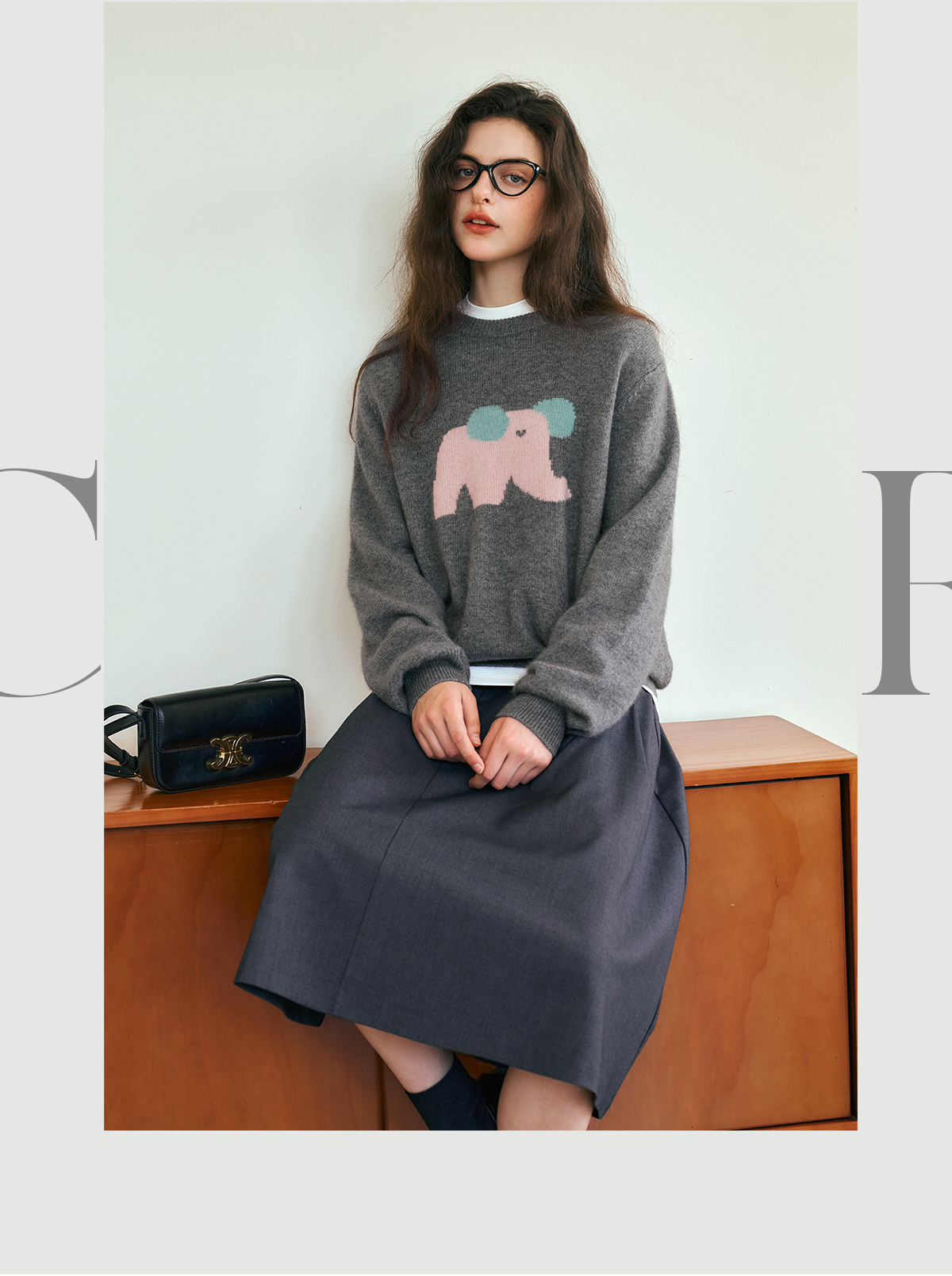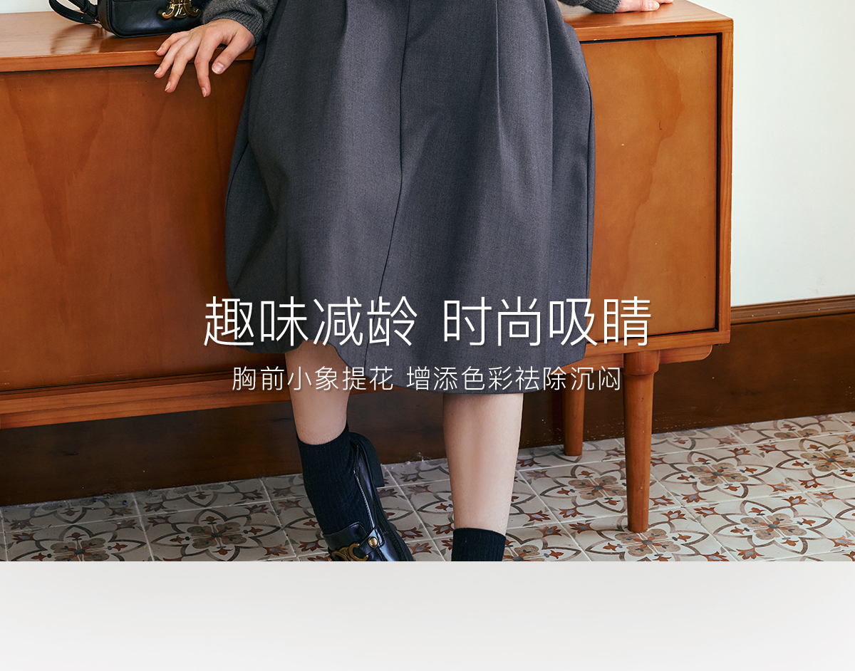 OLrain欧芮儿法式套头毛衣女秋季2024年新款趣味宽松简约休闲上衣