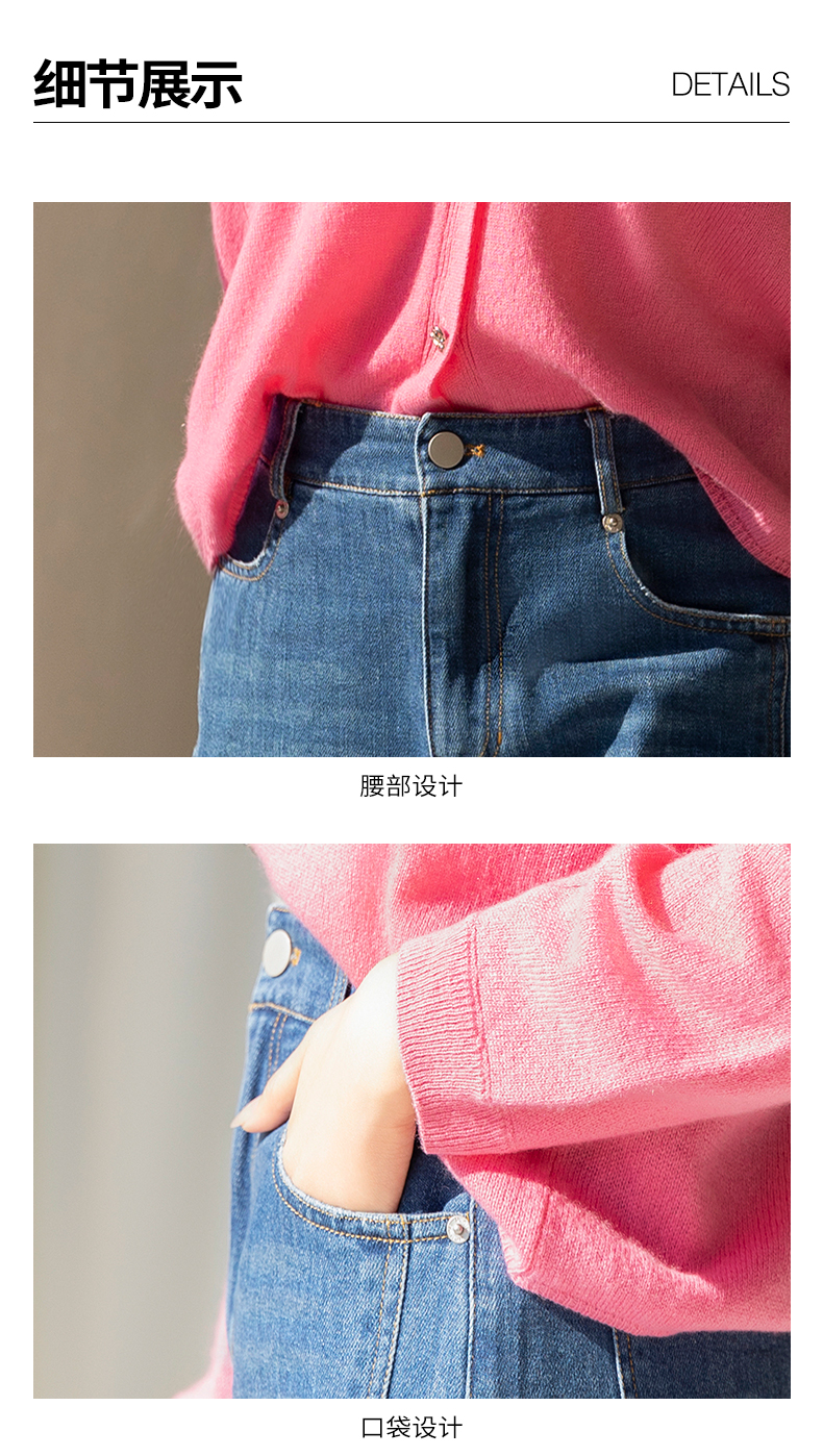 oldcolour春季新品时尚纯色通勤气质百搭水洗牛仔长裤女Q121103A1