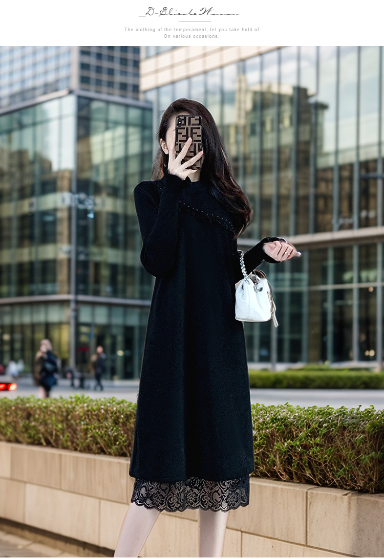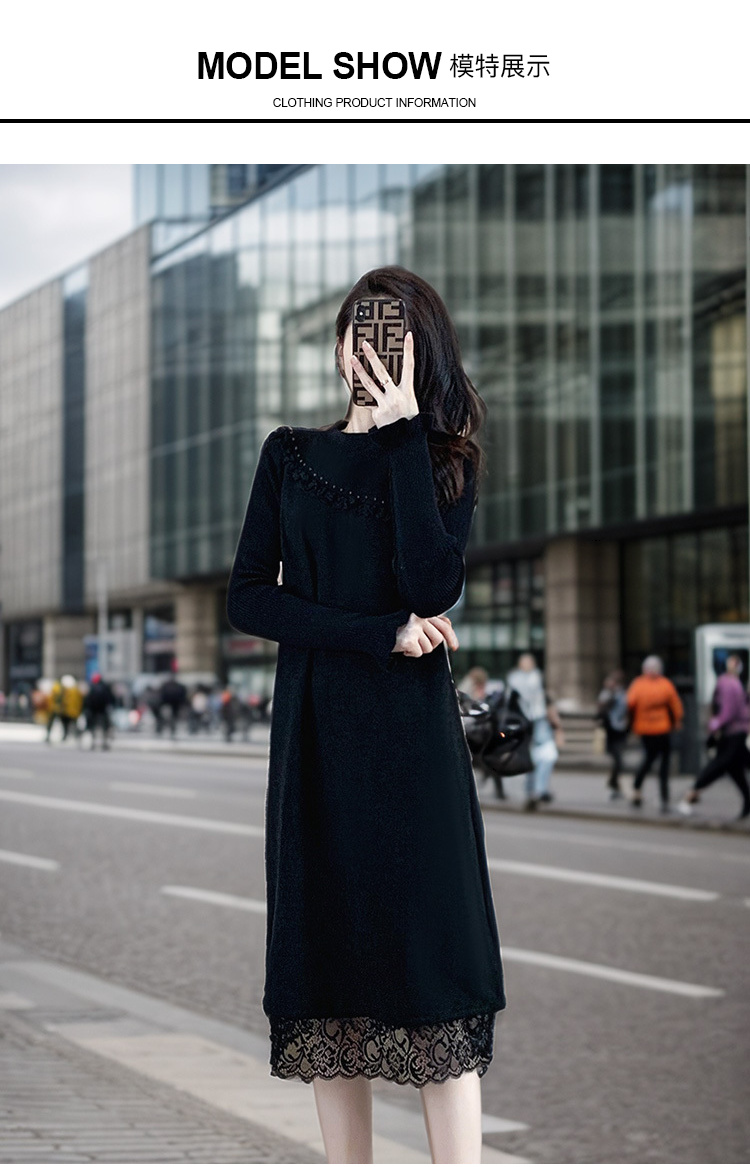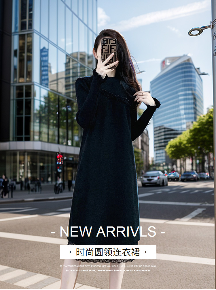 奢姿2024年冬装新款大码女装气质圆领连衣裙胖妹妹蕾丝钉珠裙子5224802590