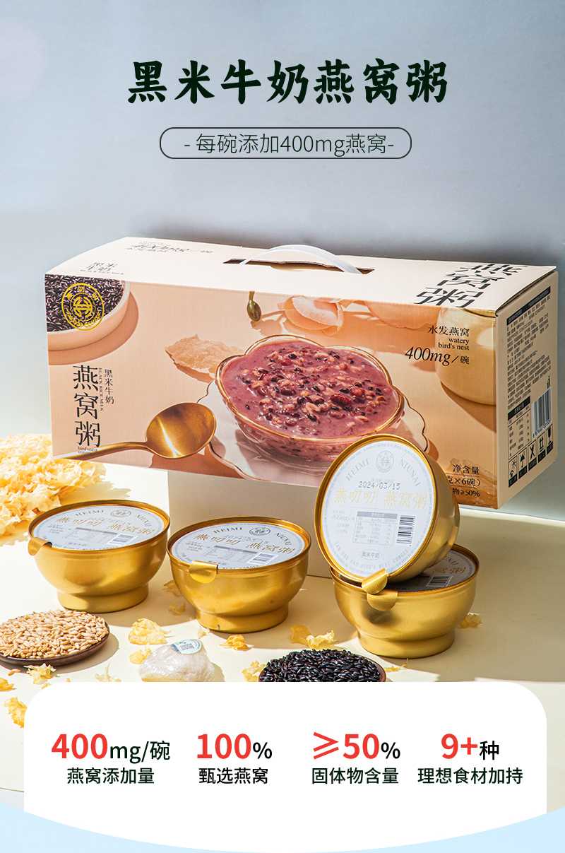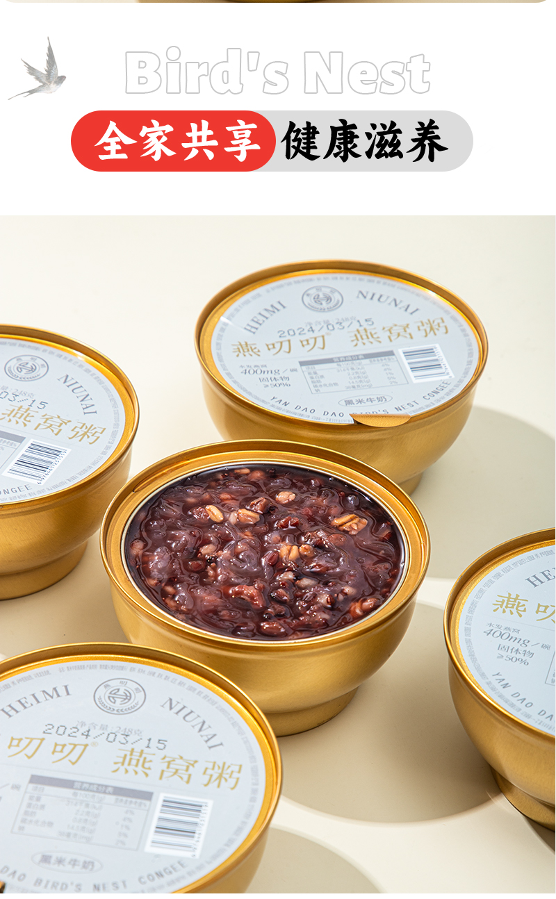 燕叨叨黑米牛奶燕窝粥礼盒248g*6碗 孕妇早餐代餐粥滋补速食粥年货送礼