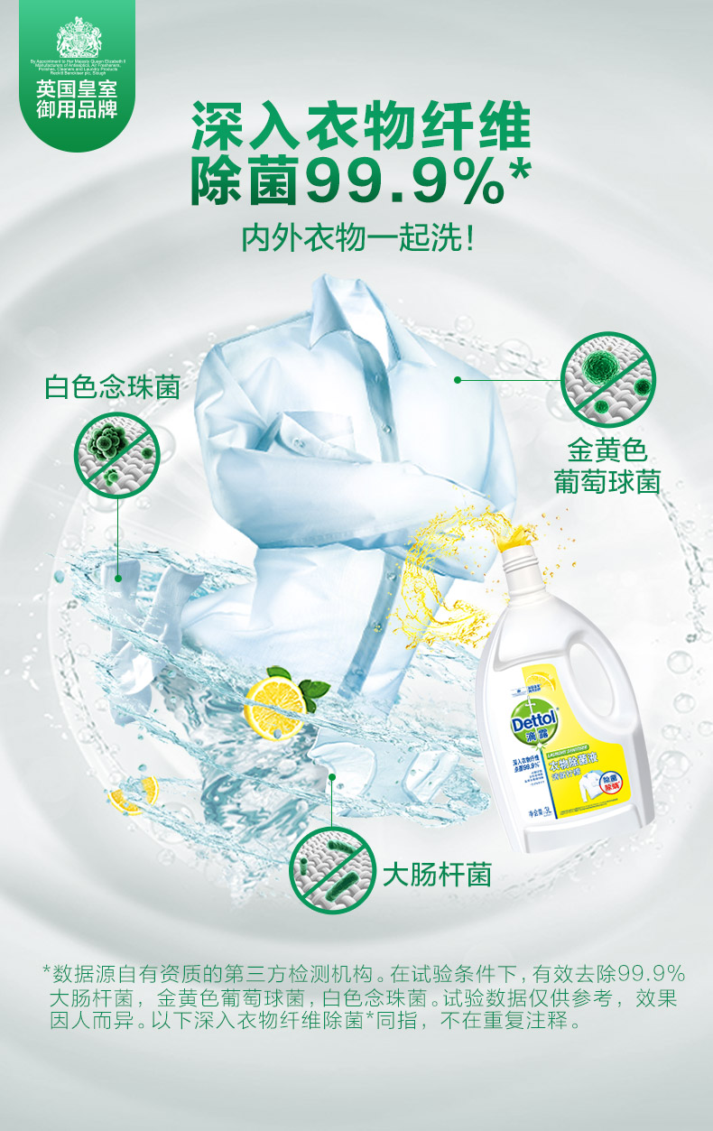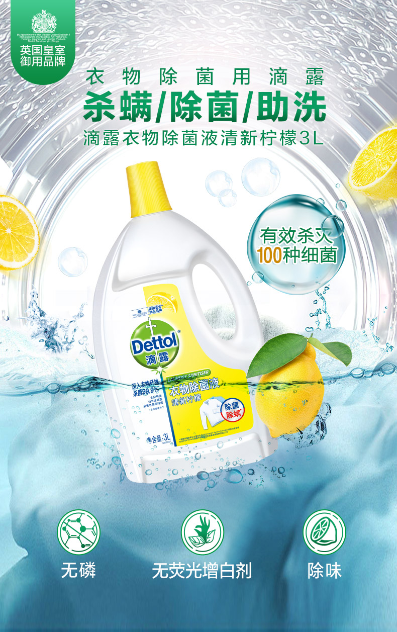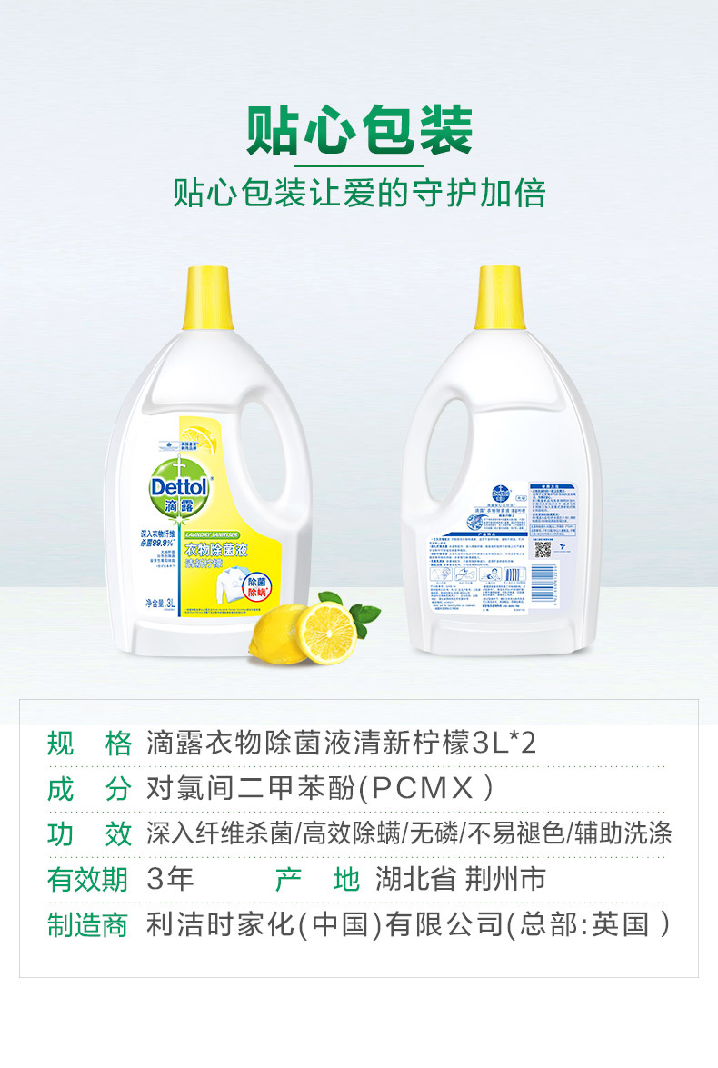 Dettol/滴露柠檬 衣服除J液 3L*2瓶 大容量 家庭装 除螨 持久留香 去渍