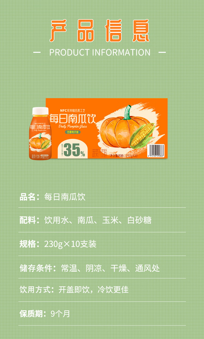 【配料】饮用水、南瓜、玉米、白砂糖