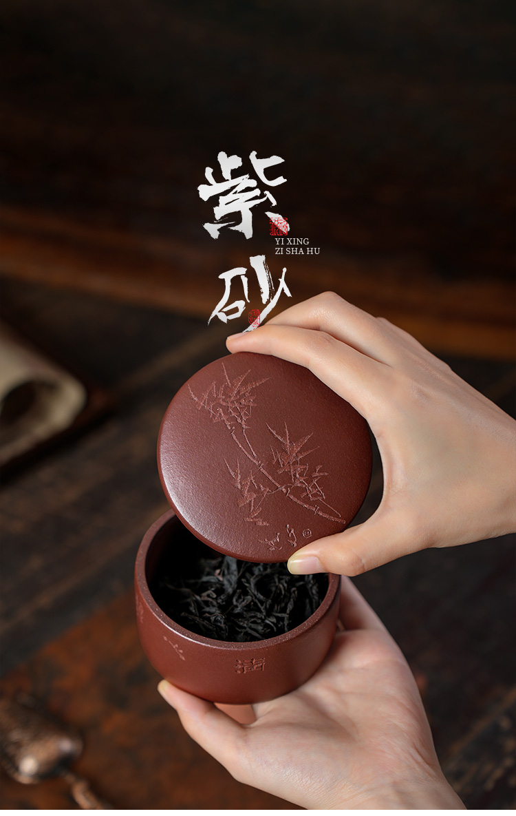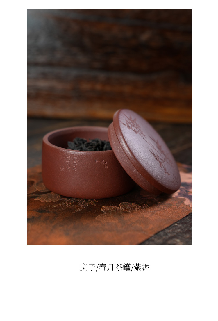 庚子 春月茶罐 紫泥宜兴紫砂茶叶罐普洱茶缸陶瓷大号醒茶罐储存罐家用罐子
