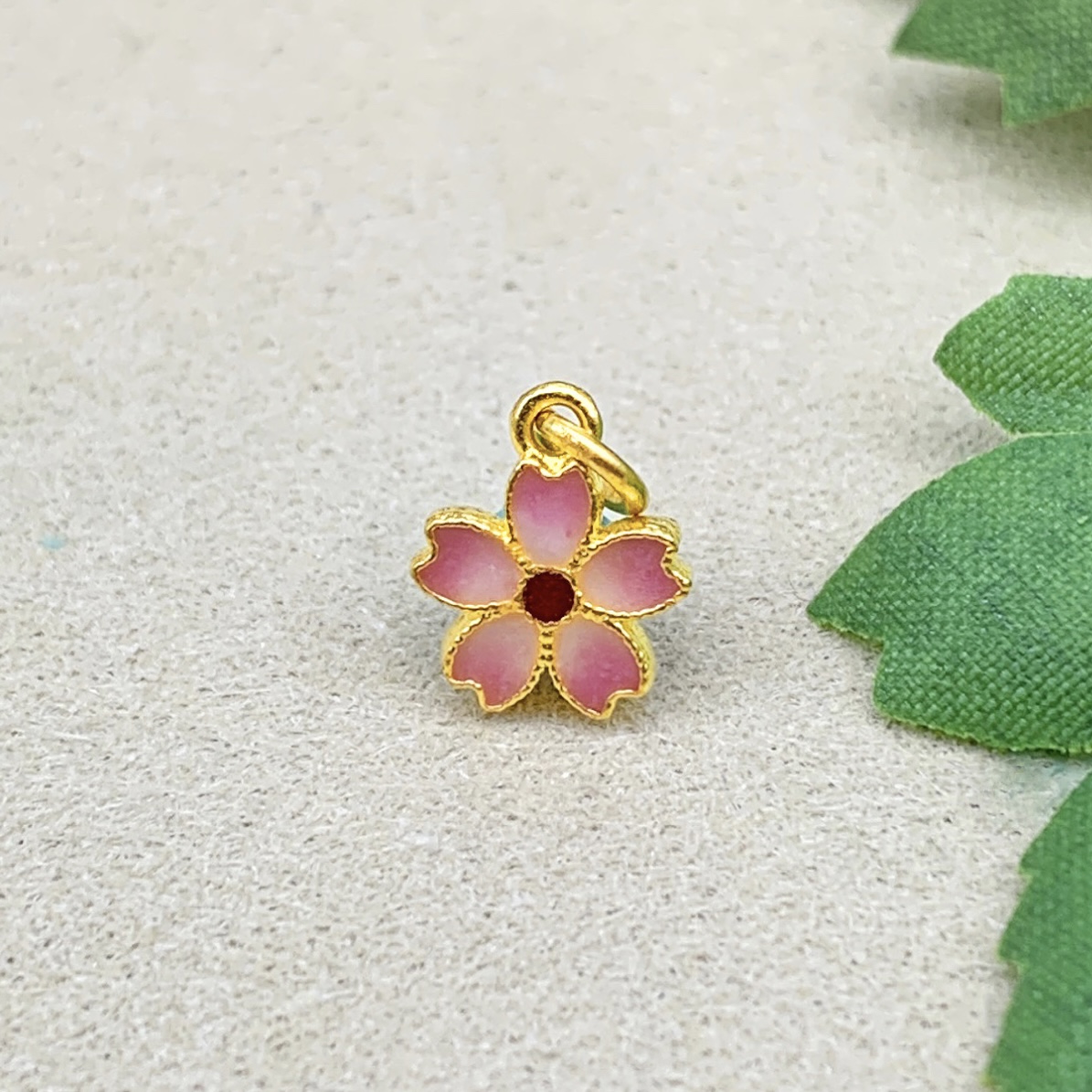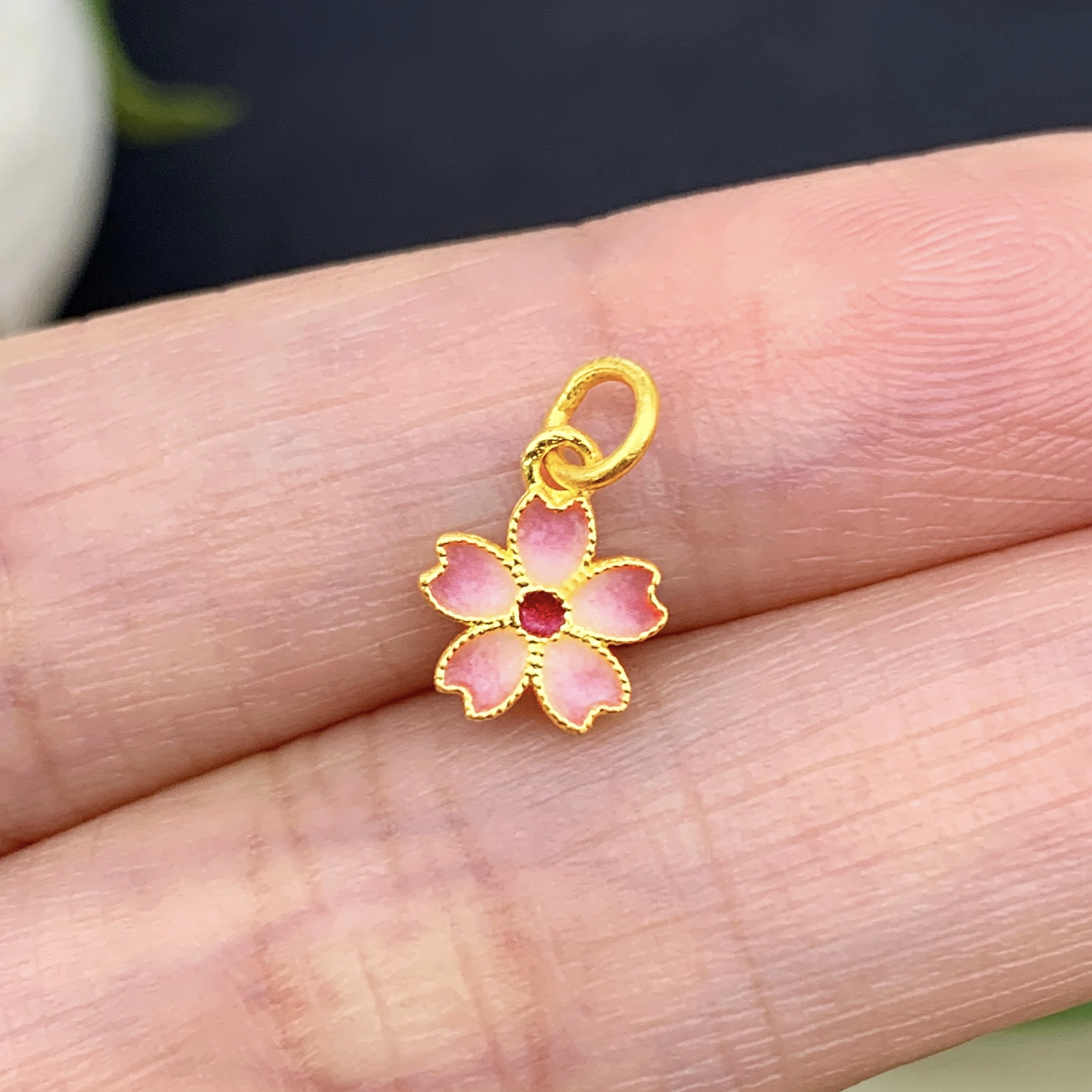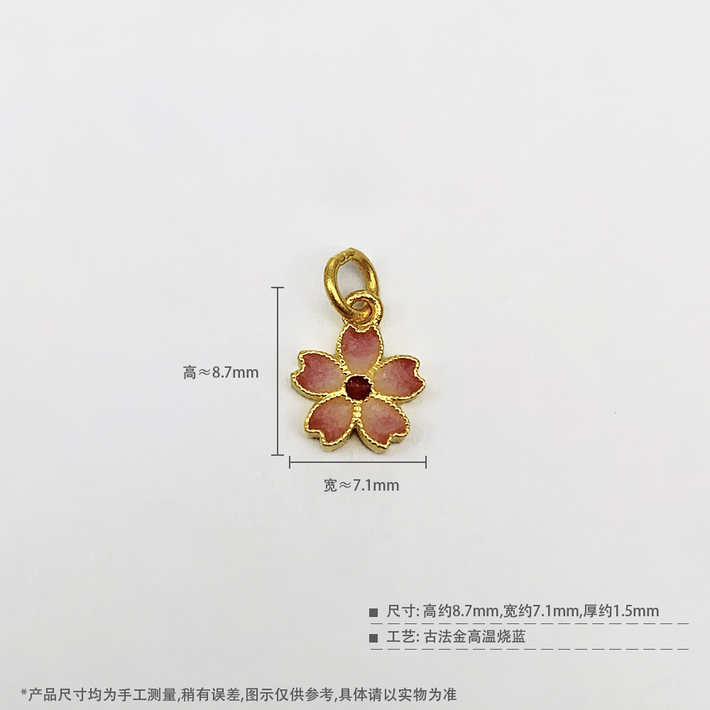 【限时7.5折】【定价黄金】足金 #高温珐琅 古法高温烧蓝高温珐琅空心樱花吊坠挂件(AKGFDZ00039)预售产品下单后不退款不退货不换货不补差价