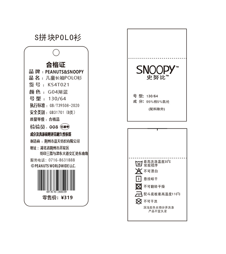 【清仓捡漏】【130-160】【史努比】男童春秋款长袖T恤POLO衫