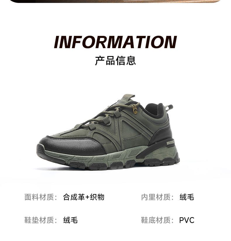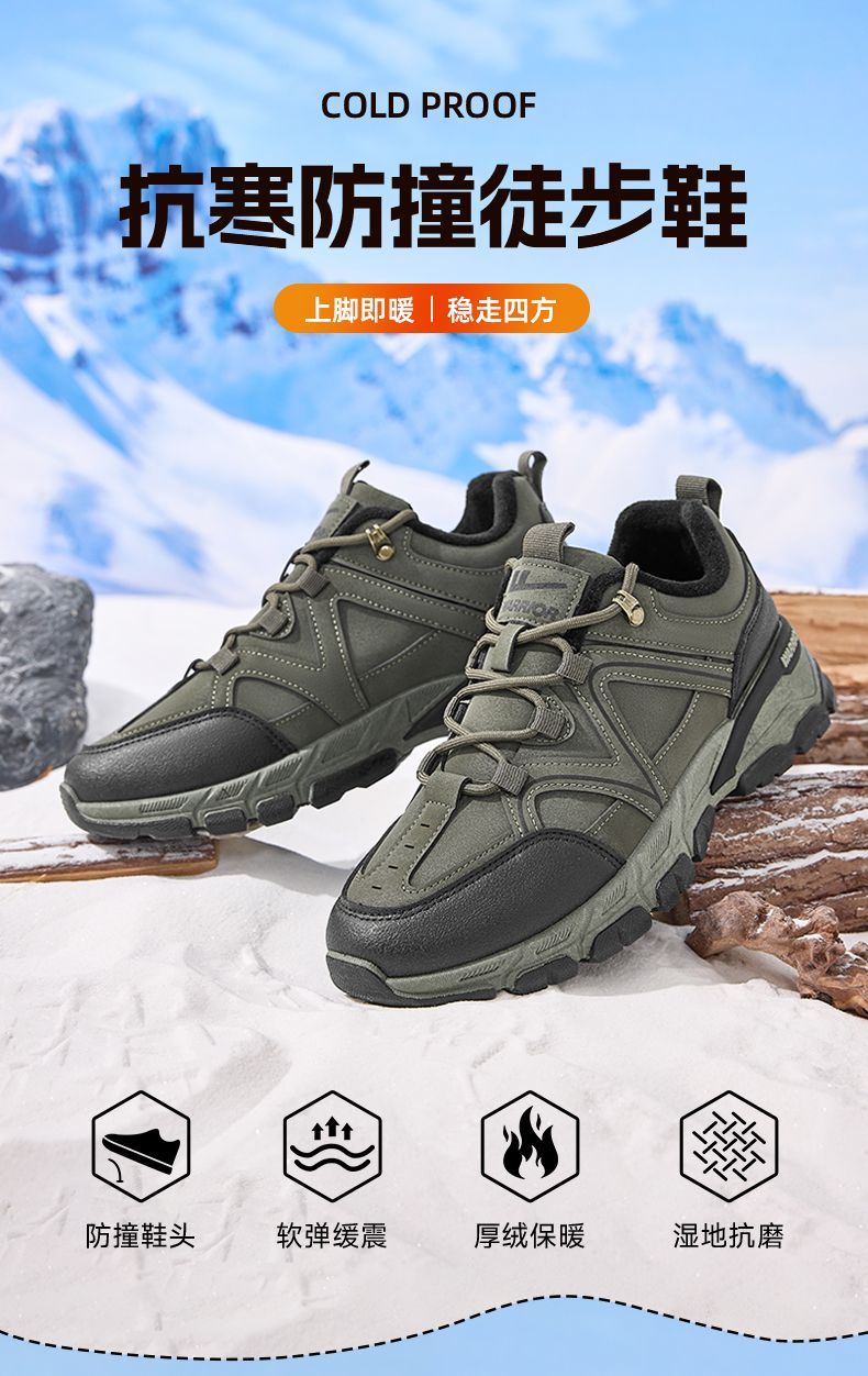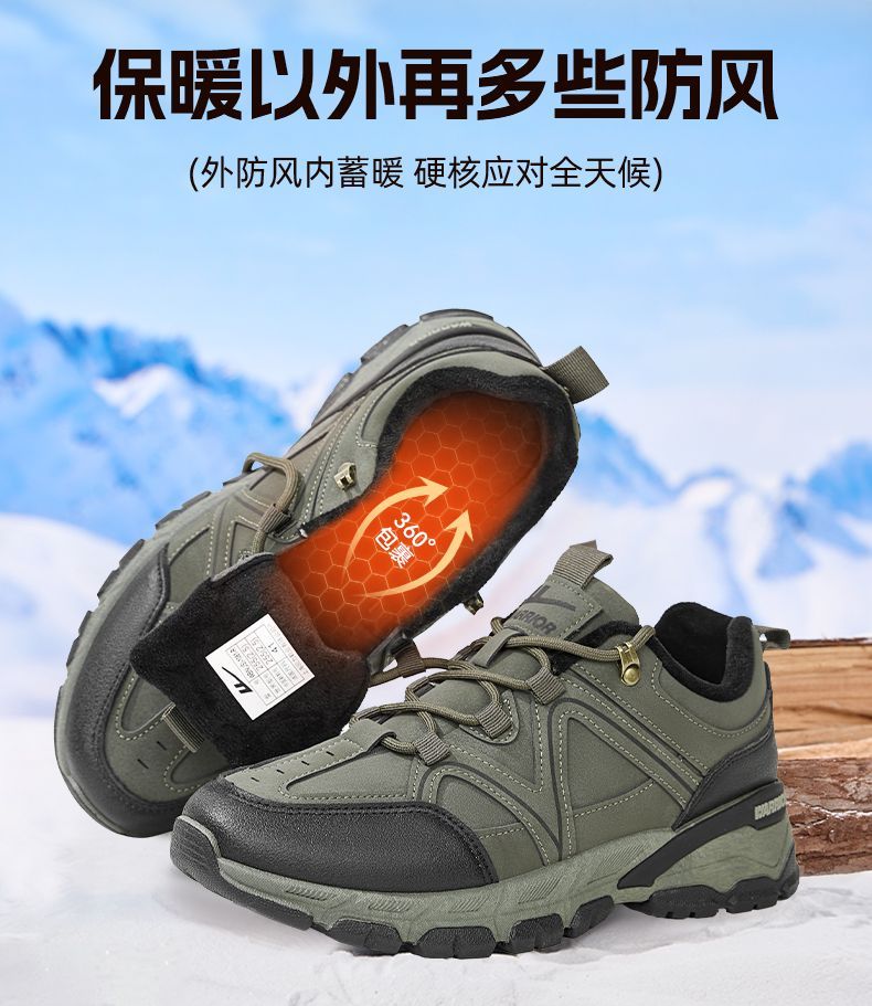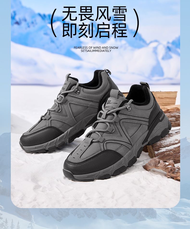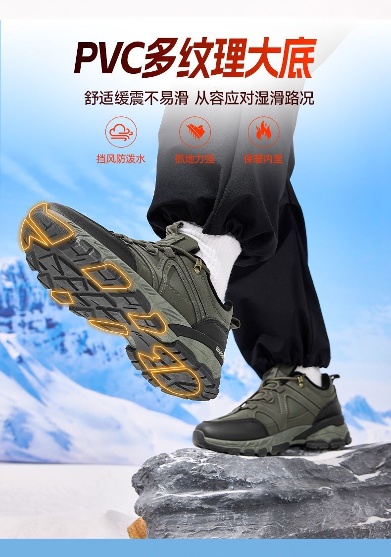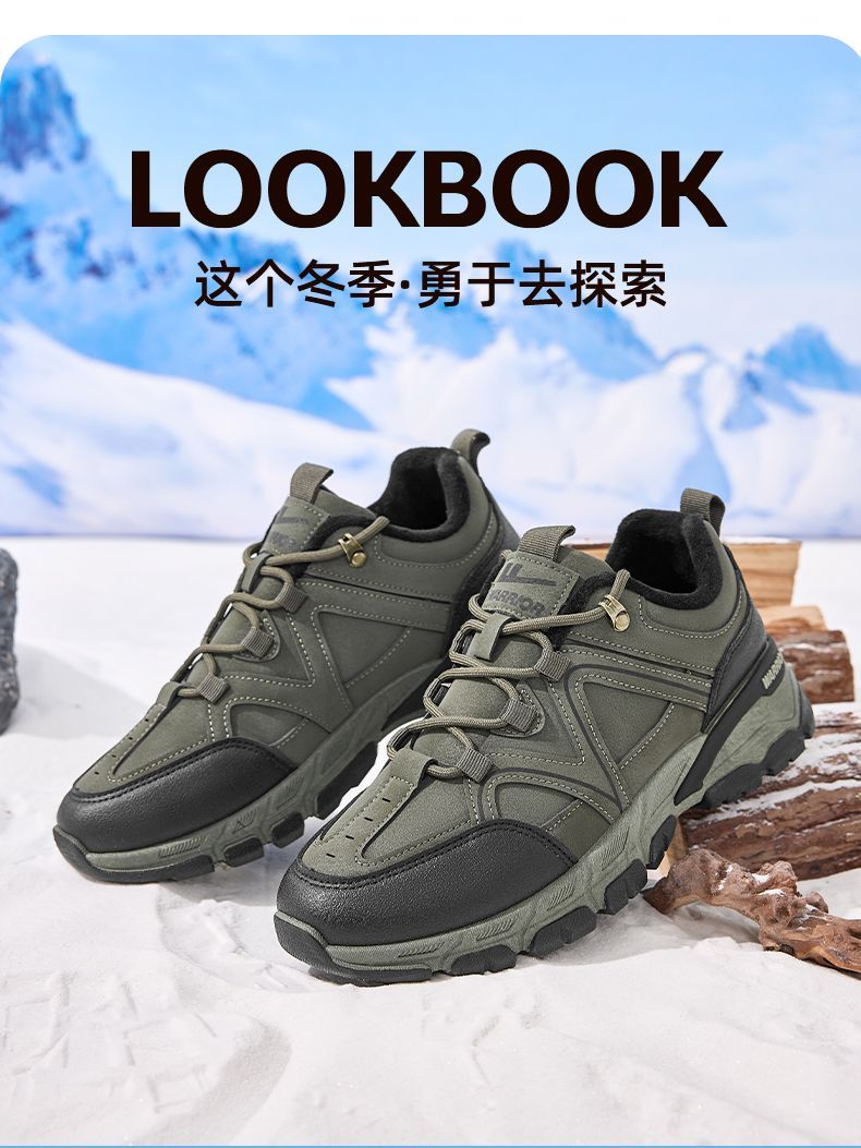 回力男鞋加绒工装鞋2025冬季新款户外徒步登山鞋厚底保暖运动鞋男