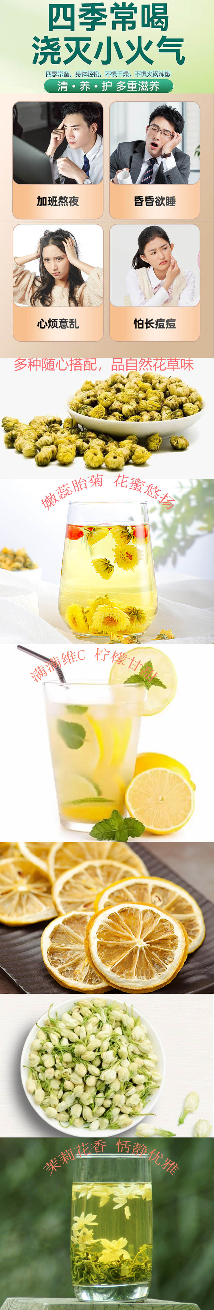 养生花茶组合装(茉莉花35g,柠檬片50g,胎菊70g)