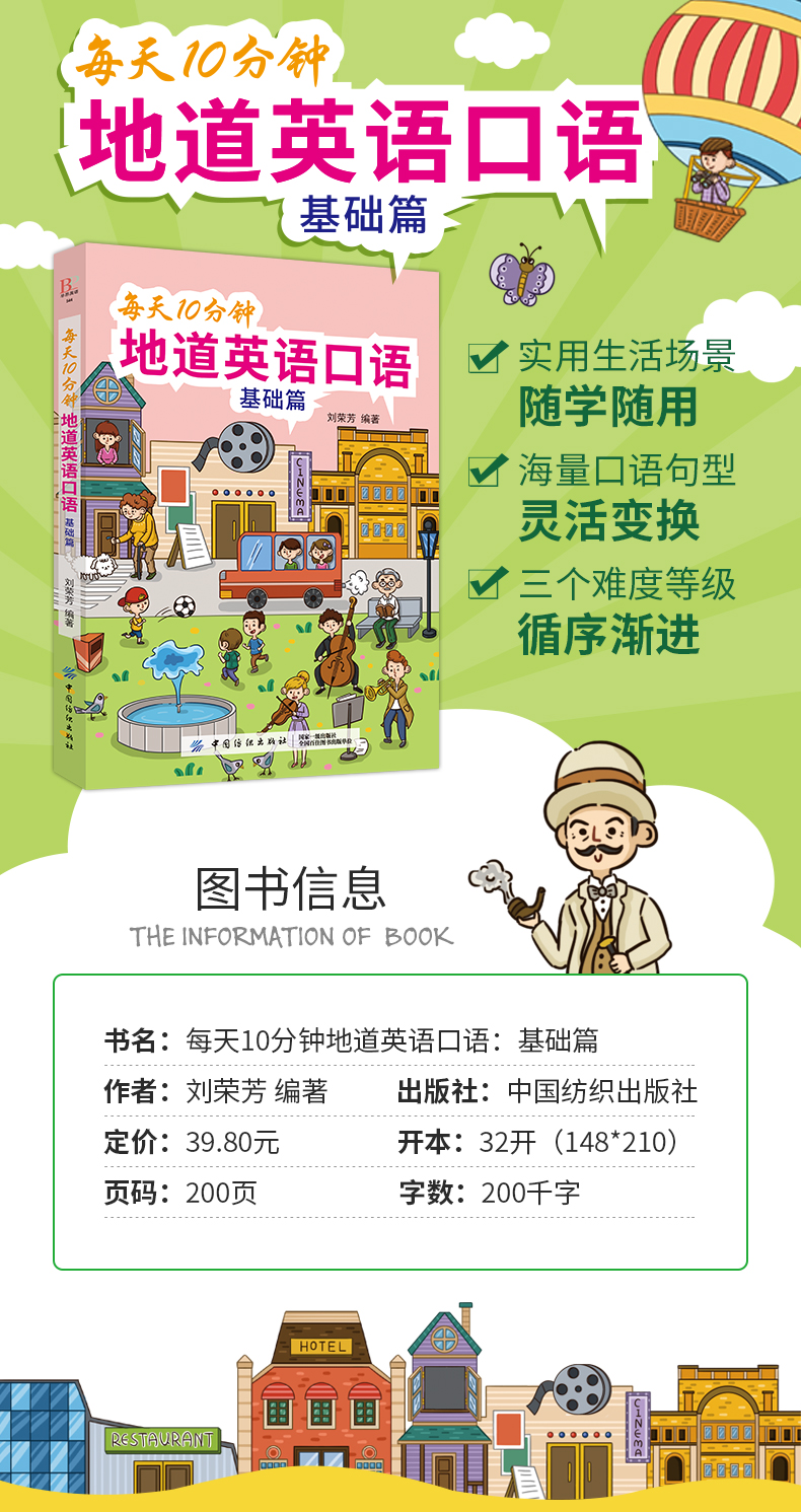 每天10分钟地道英语口语基础篇 从零开始练口语 自学入门与提高 美式英语口语书籍大全日常生活单词例句会话实例成人英语入门