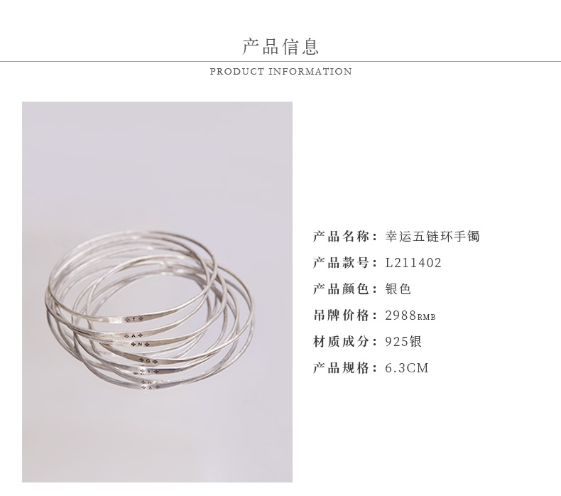TANGY Collection/天意精品2021年春季新品幸运五连环手镯925银