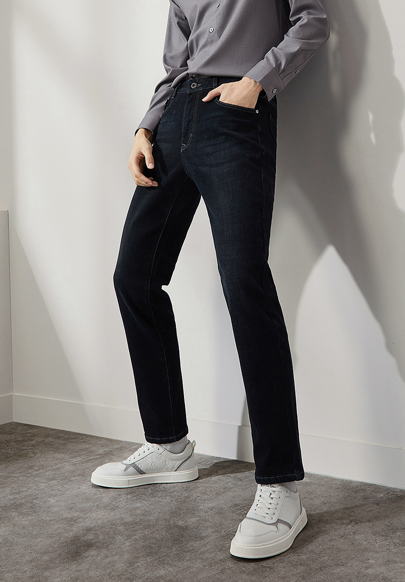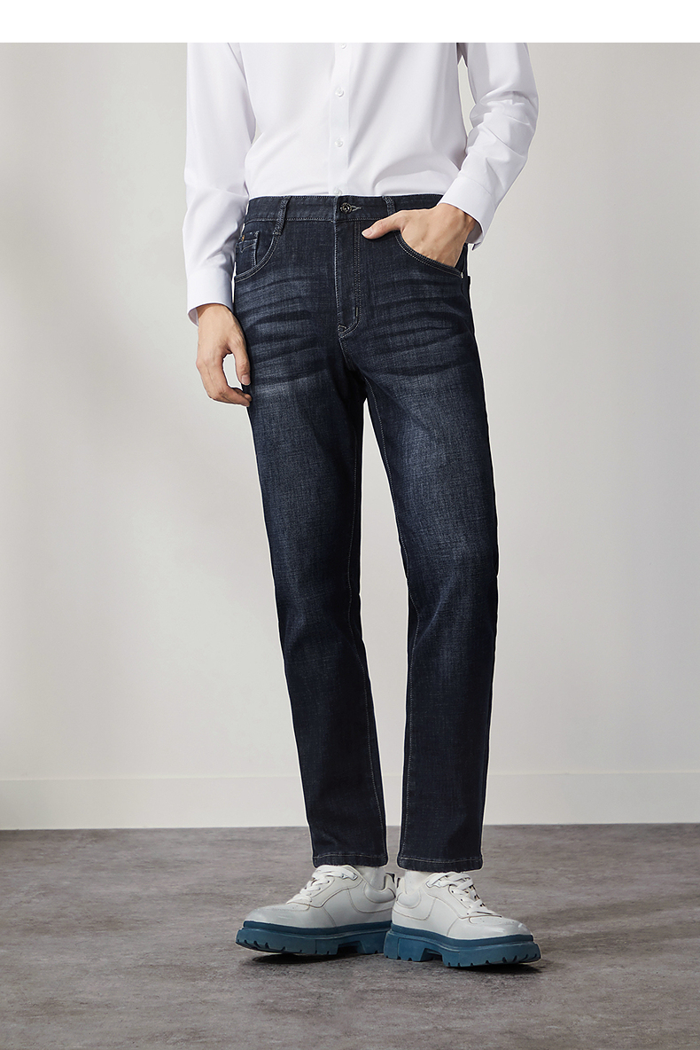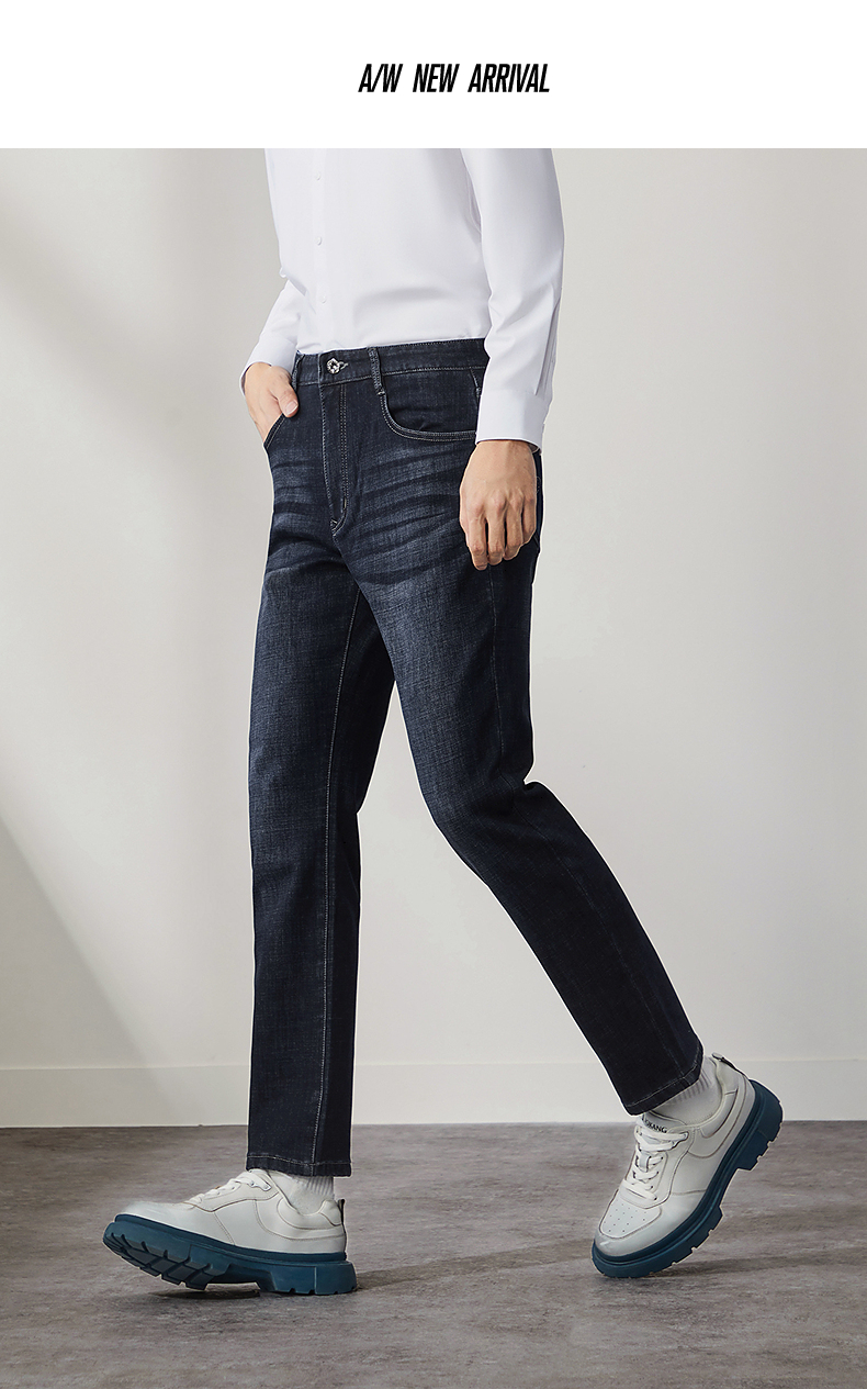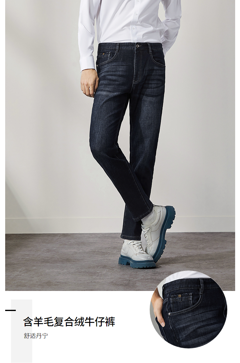 【复合绒】柒牌牛仔裤男2024秋冬厚款时尚休闲含羊毛保暖直筒长裤 127H71540