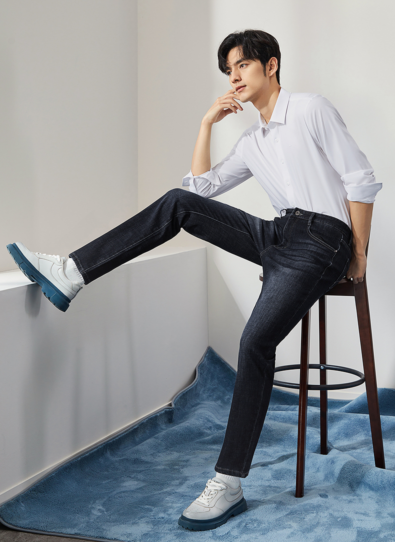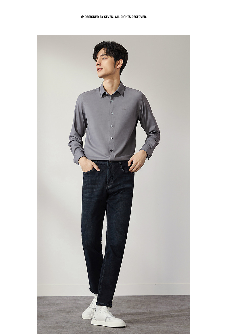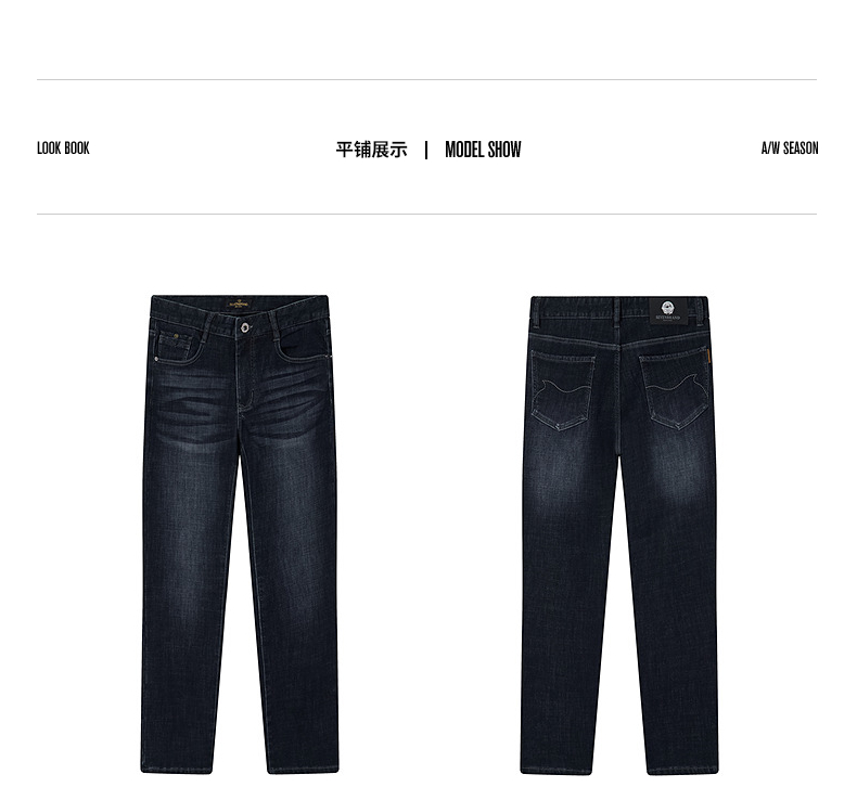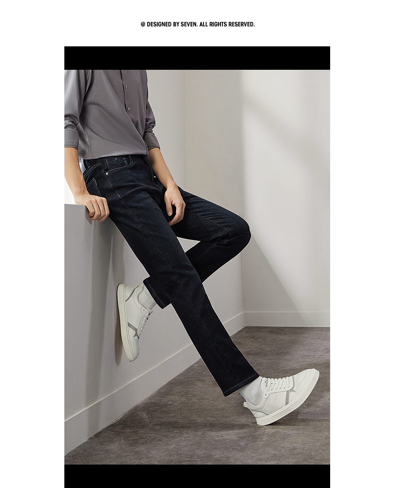 【复合绒】柒牌牛仔裤男2024秋冬厚款时尚休闲含羊毛保暖直筒长裤 127H71540