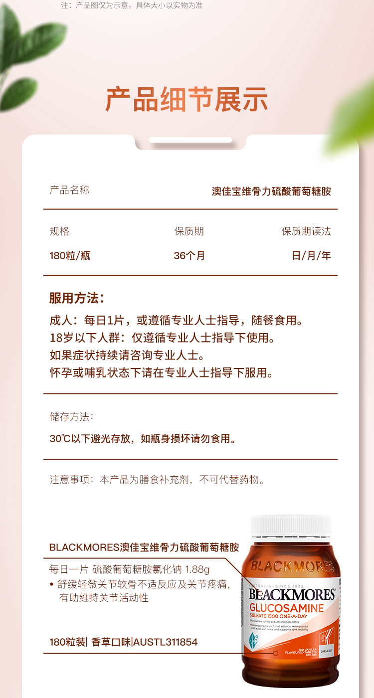 Blackmores澳佳宝维骨力硫酸氨基葡萄糖片 180片