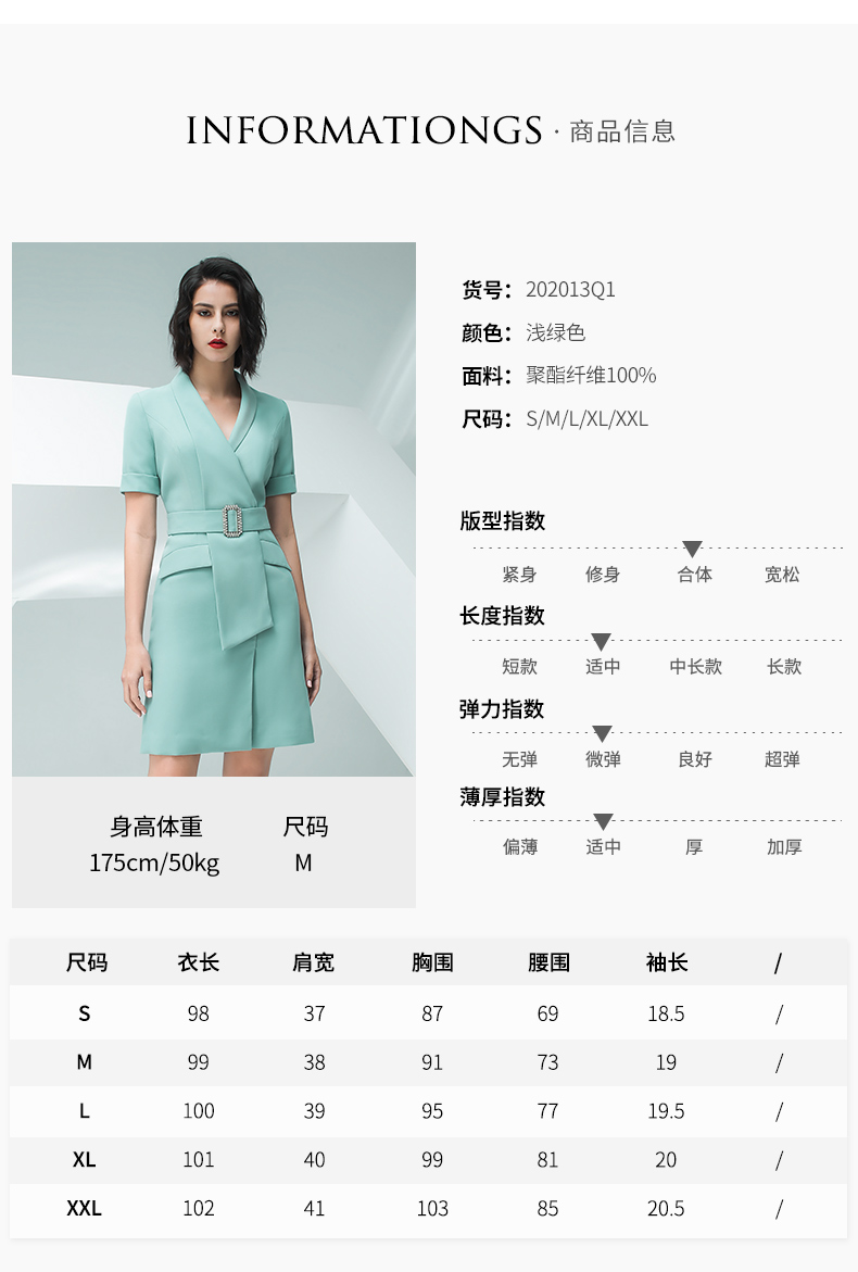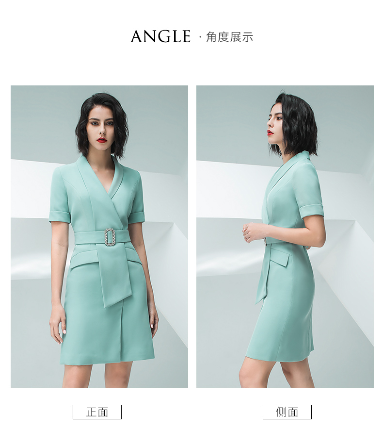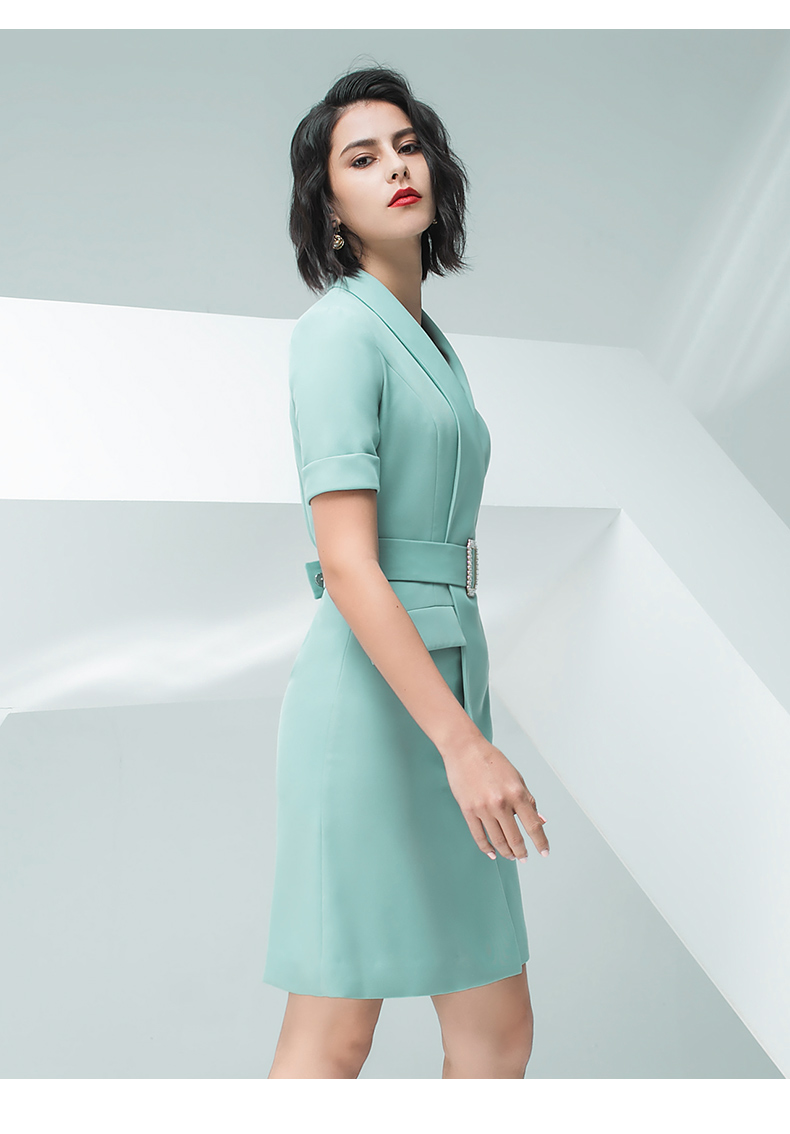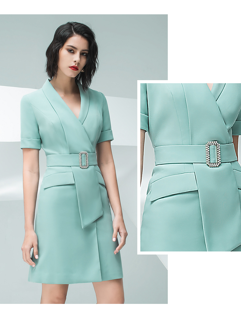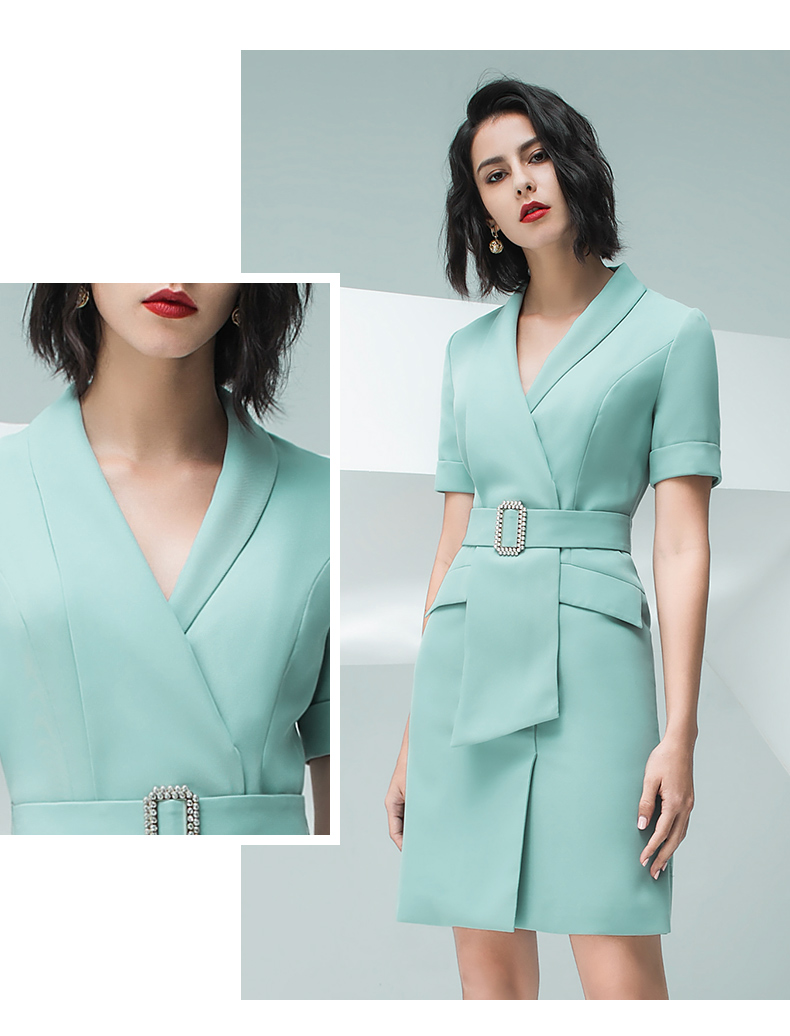IWY/气质浅绿色短袖连衣裙女时尚职业装修身显瘦绑带连衣裙202013Q1