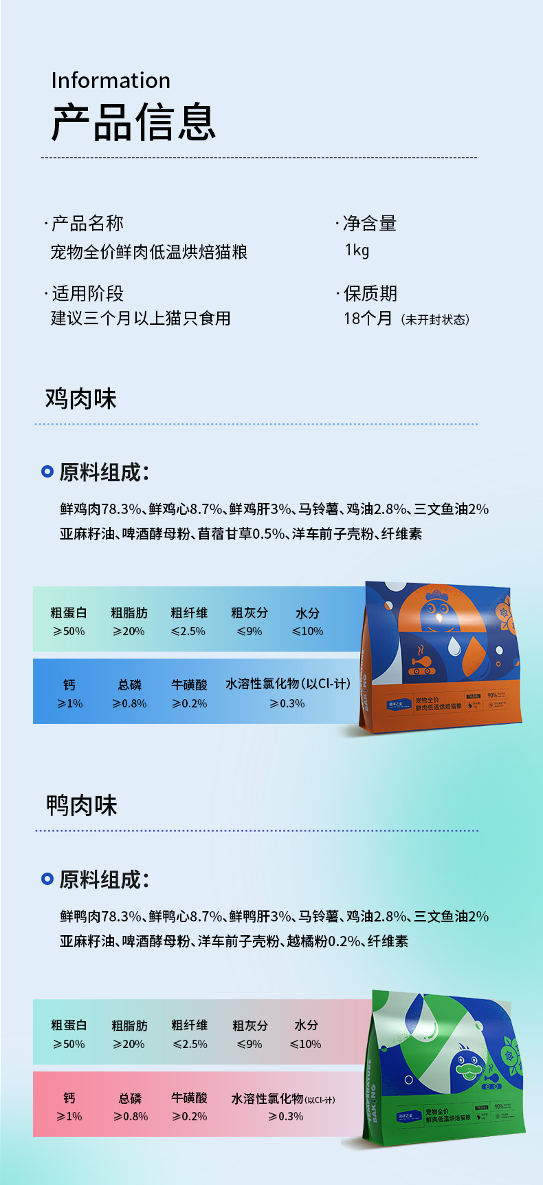 新海洋之星 低温烘焙猫粮1kg 鲜肉高蛋白增肥呵护肠胃