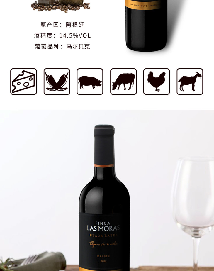 阿根廷原瓶进口红酒 罗斯摩萨-黑标马尔贝克特选红葡萄酒 Las Moras Black Label Malbec 单支装750ml